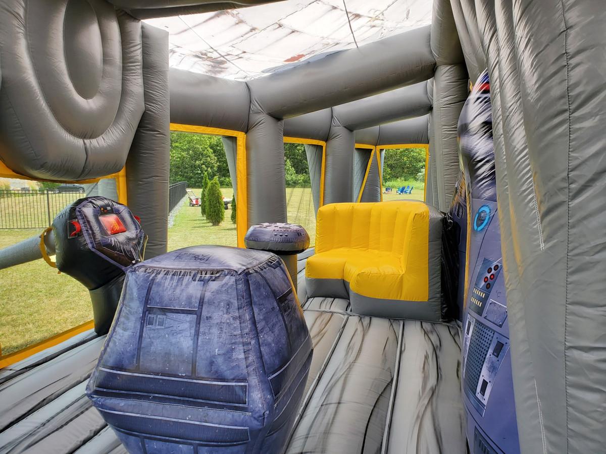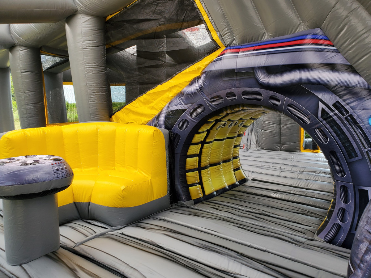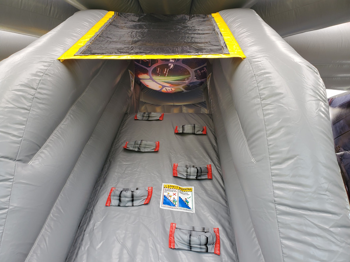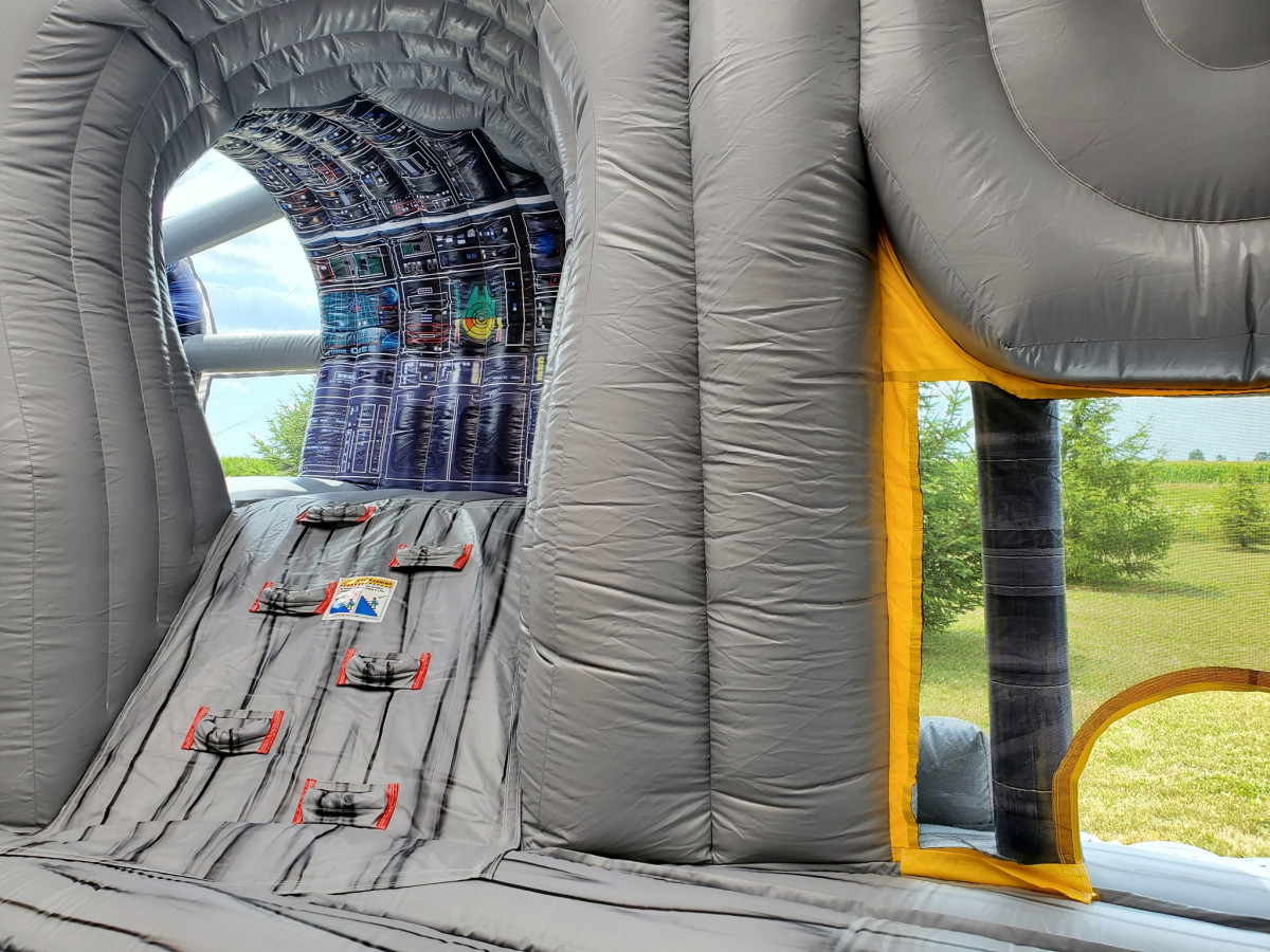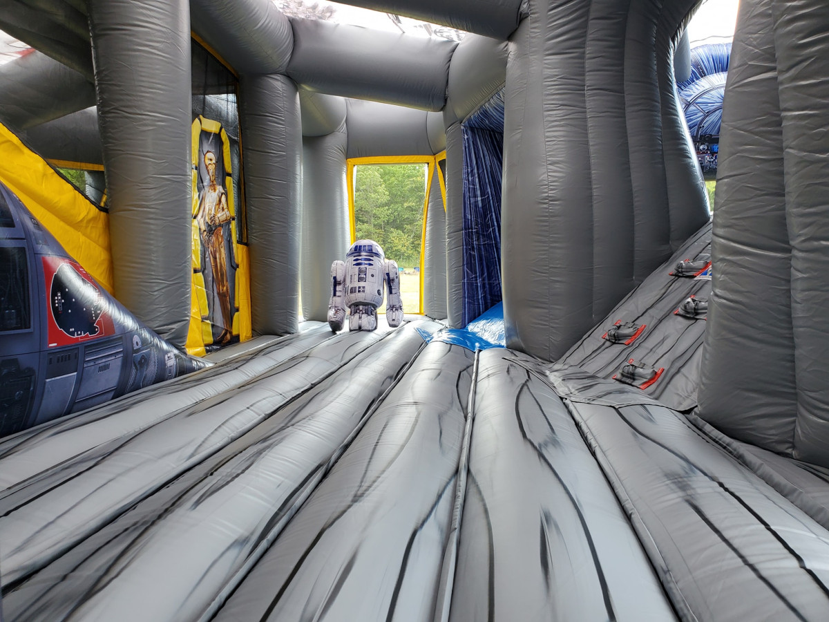Exkluzivní atrakce k pronájmu – nafukovací aktivní centrum v designu legendární ságy Star Wars. Děti uvnitř naleznou skákací plochu jako u skákacího hradu, nafukovací skluzavky, mini horolezecké stěny, průlezky a nafukovací překážky.