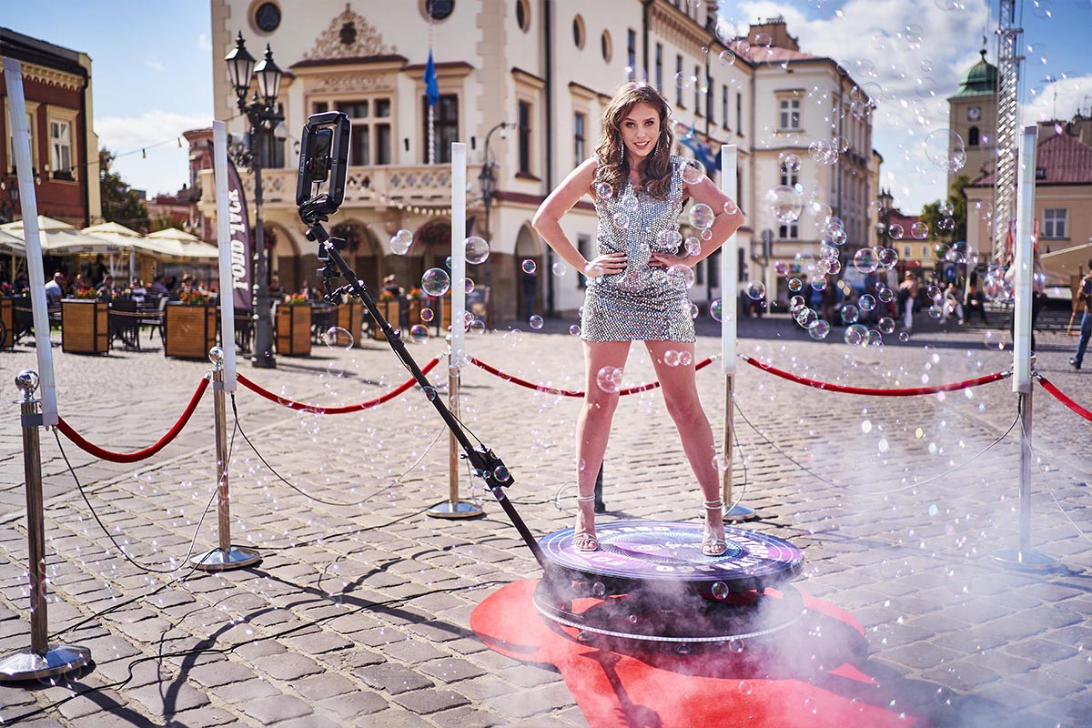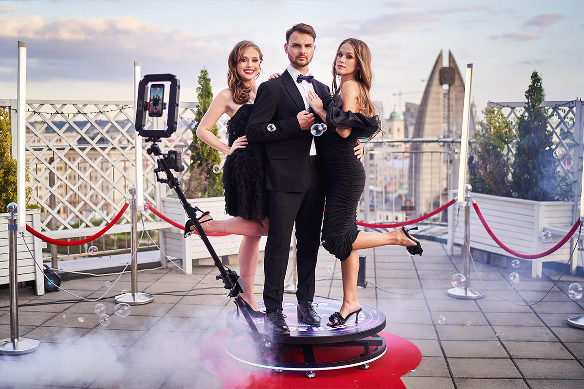 Fotokoutek 360° - dokonalá zábava pro každou akci. Místo fotek video, místo nehybného pózování tanec na platformě, místo fotek do alba, video na sociální sítě! Pronájem fotobudky 360° je možné kombinovat i s pronájmem klasické fotobudky a obsáhnout tak široké pole zábavy a chutí návštěvníků akce. Video spin 360° rozhýbe zábavu na každé párty!