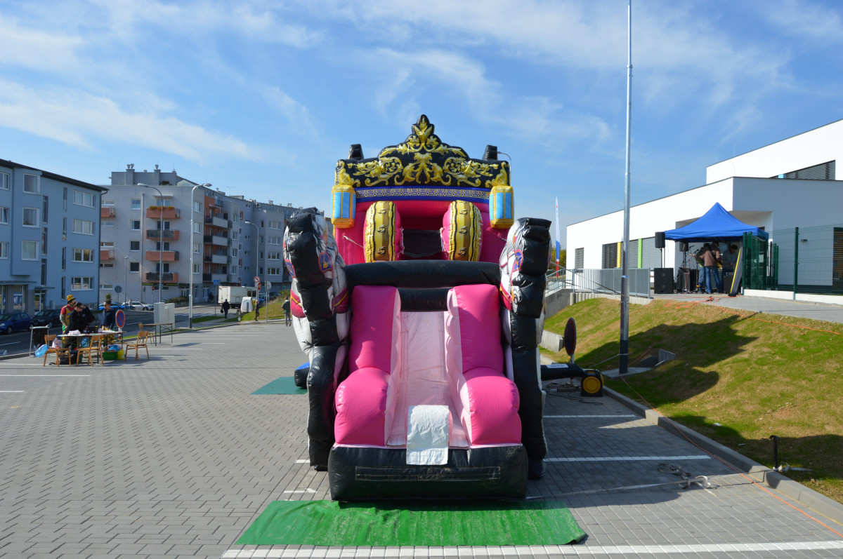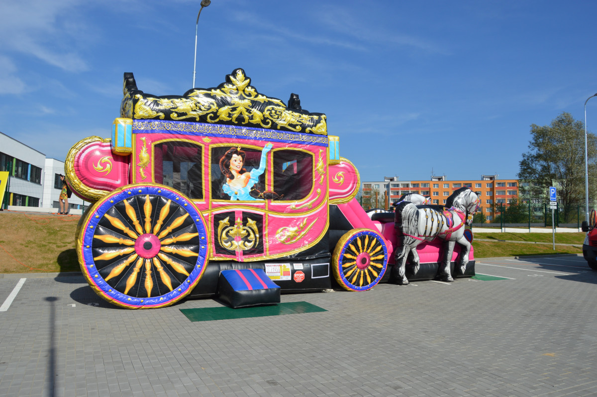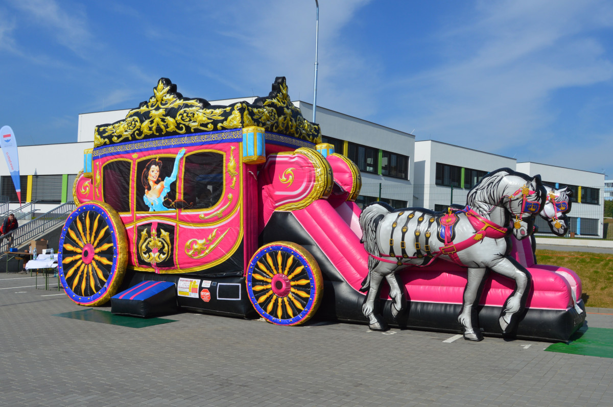 v sobě skrývá nejen skákací hrad, ale také miniskluzavku. Atrakce aktivní centrum princeznovský kočár je kombinací velkého skákacího hradu a skluzavky.