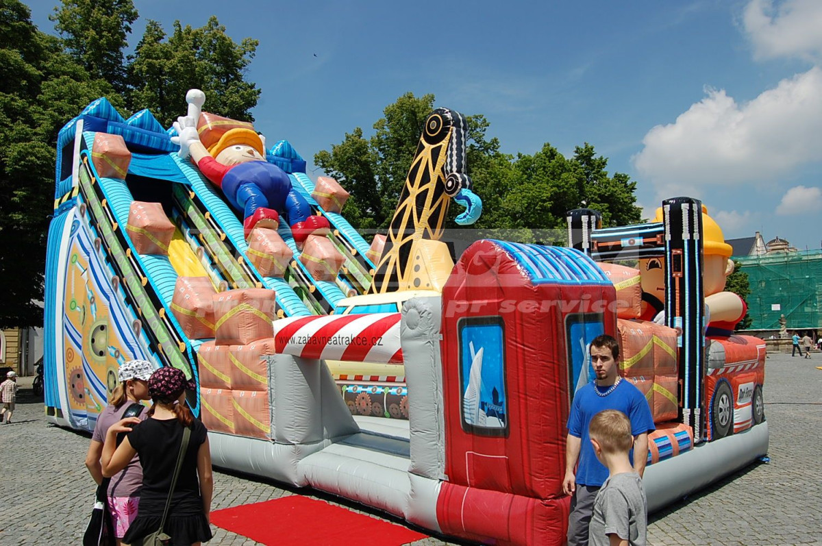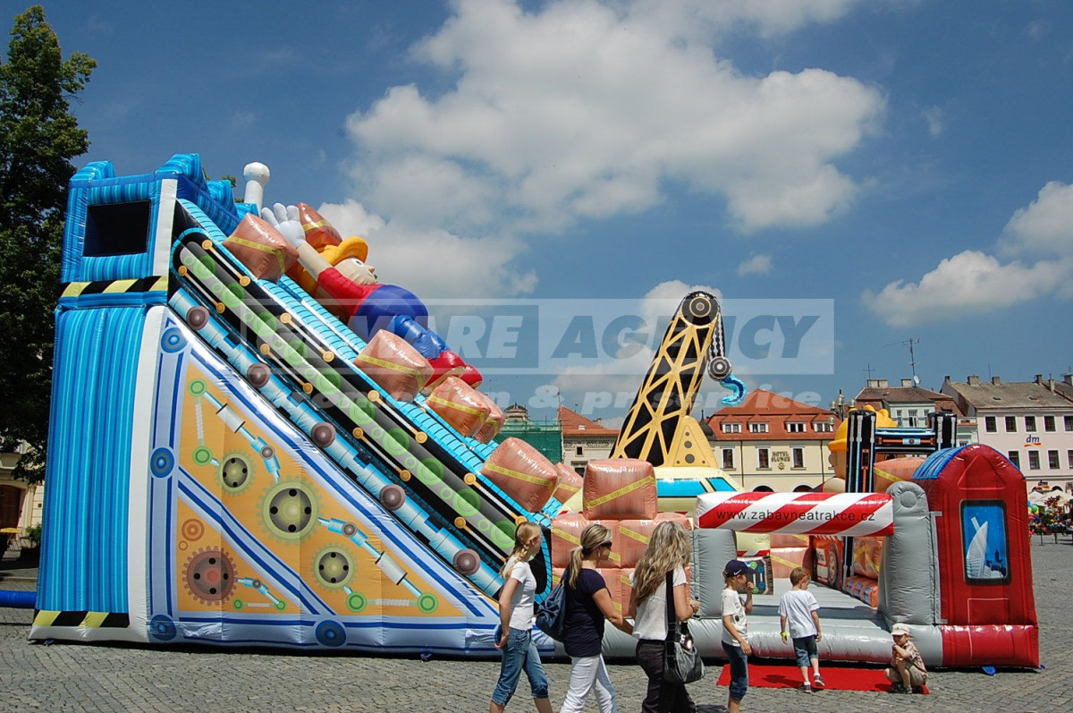 Cena obsahuje: pronájem atrakce AC Bořek stavitel, montáž, demontáž, obsluhu po celou dobu akce, pojištění ve výši 20 000 000 Kč proti případným úrazům a škodám