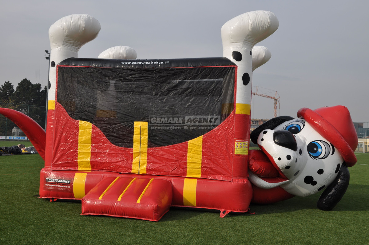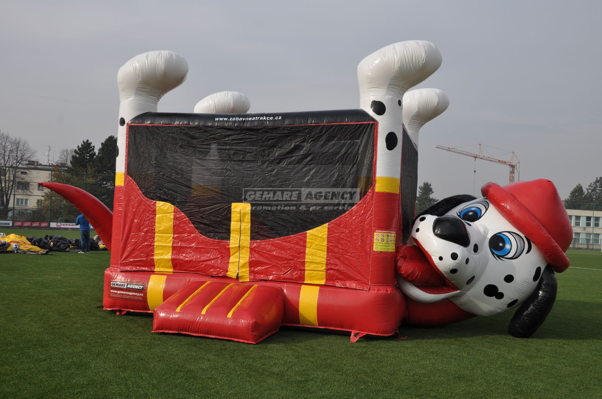 Skákací hrad Pejsek pro malé i velké děti, je atrakce která poutá pozornost a vítá svým milým úsměvem. Skákací hrad je uzavřen ze všech čtyř stran a je tak vhodný i pro nejmenší děti.