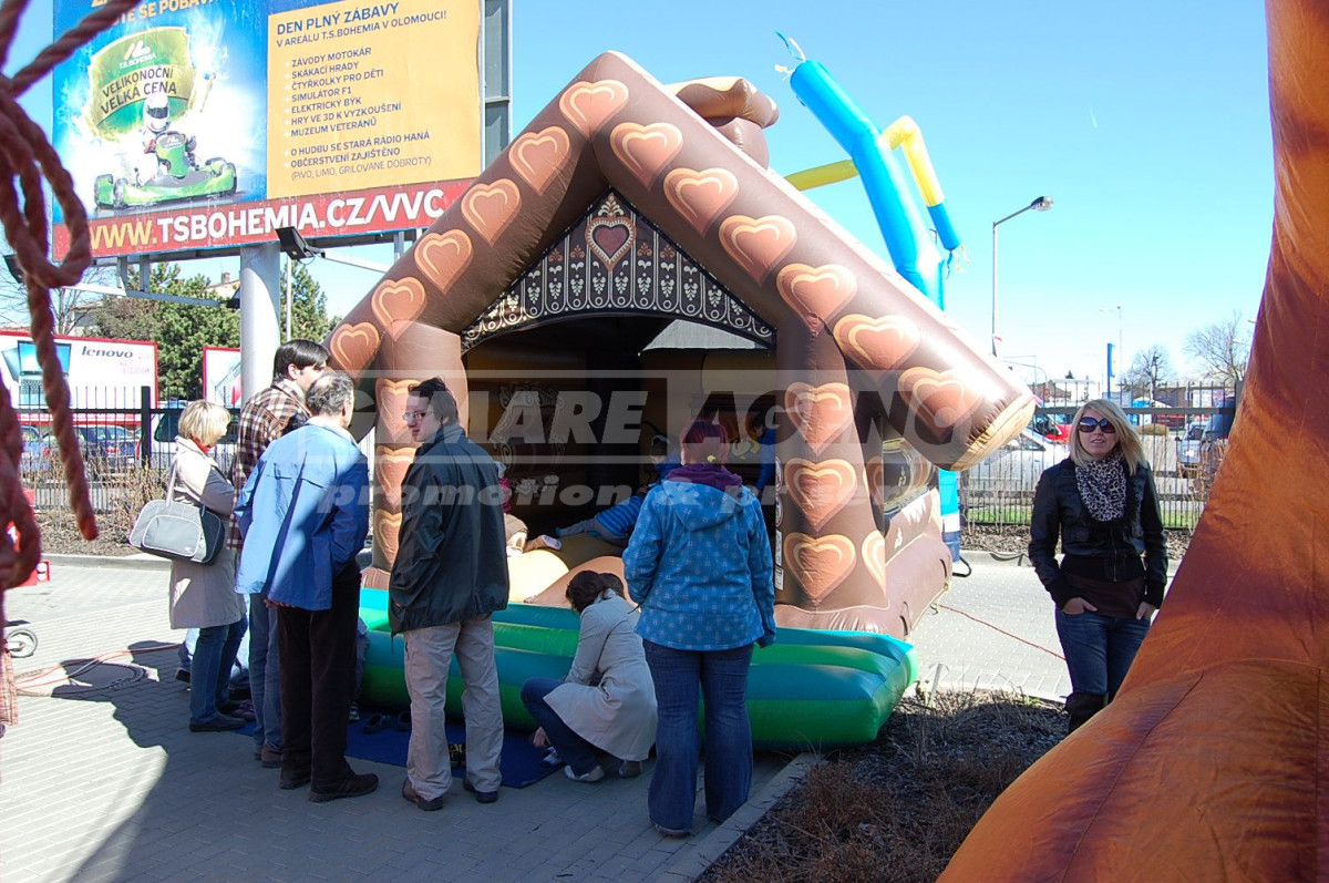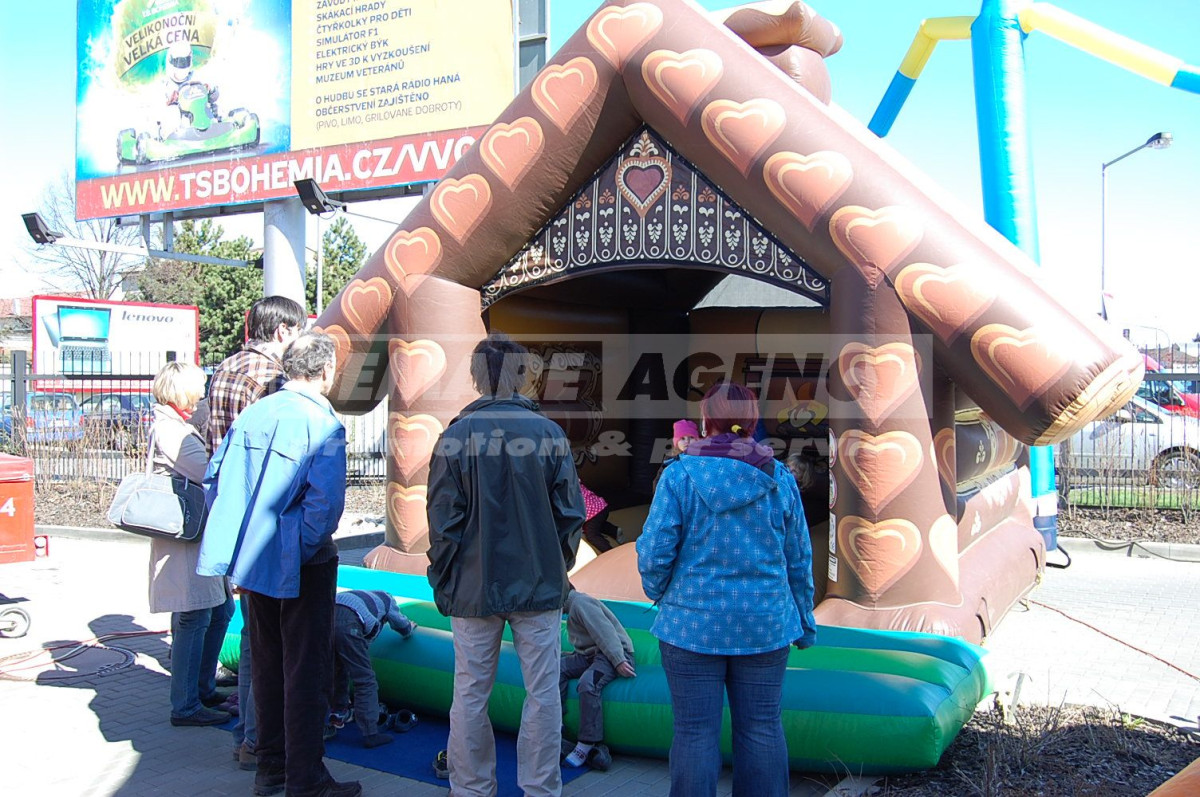 Cena obsahuje: pronájem atrakce skákací hrad perníková chaloupka, montáž, demontáž, obsluhu po celou dobu akce, pojištění ve výši 20 000 000 Kč proti případným úrazům a škodám
