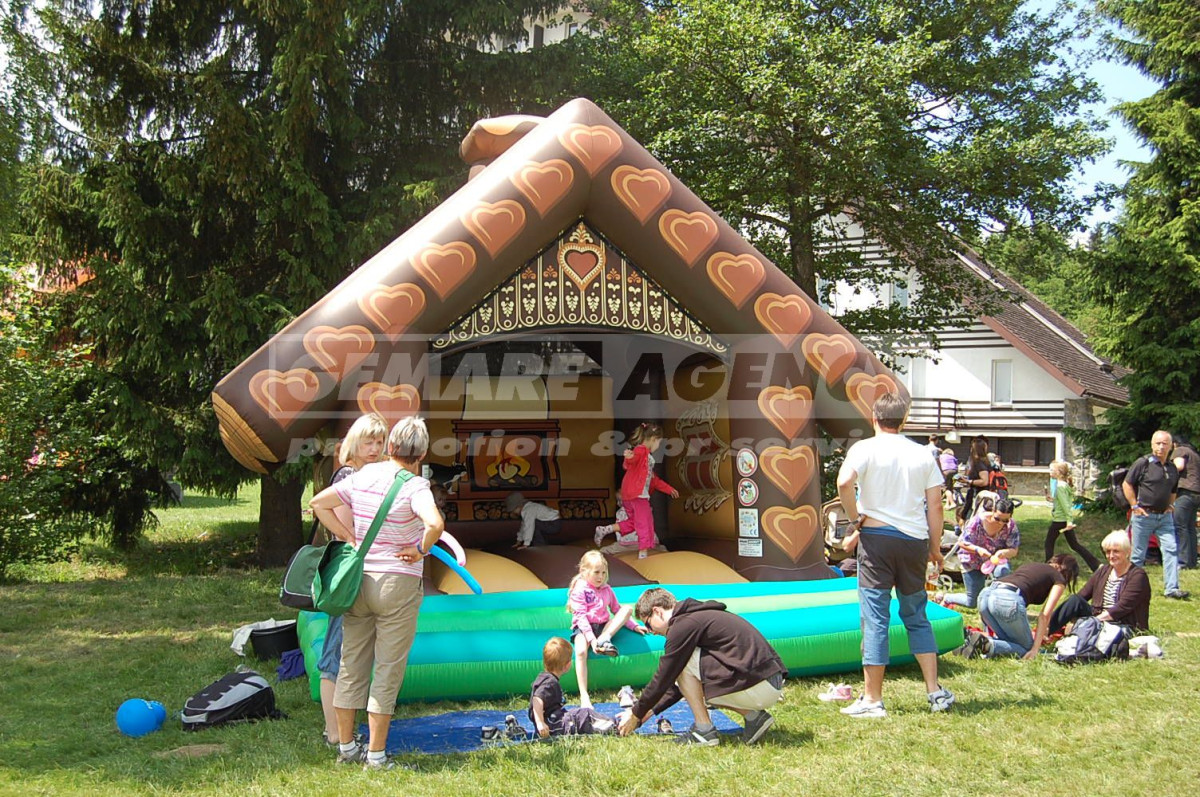 Lákavý skákací hrad, který Vám rádi dopravíme do Prahy a který je doslova k nakousnutí, je skákací hrad „Perníková chaloupka“. Nafukovací skákací hrad „Perníková chaloupka“je zástupcem dětských atrakcí s pohádkovým motivem. Zastřešený skákací hrad, který děti ochrání od nepříznivého počasí.