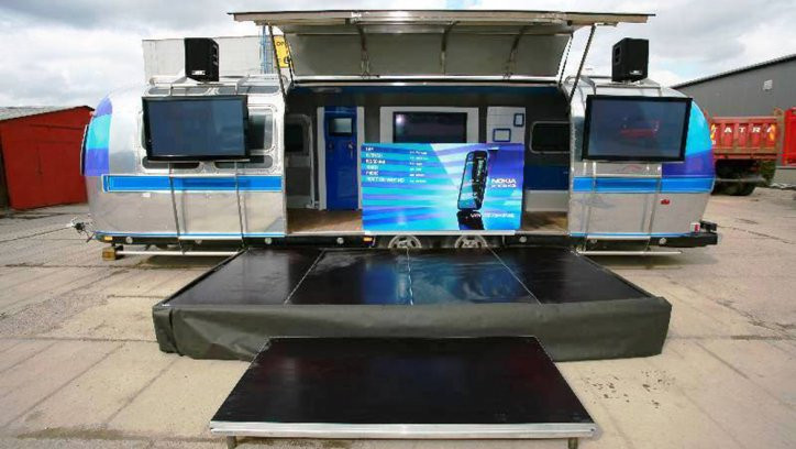 Airstream - americká legenda na čtyřech kolech. Vnitřní prostor showroomu nabízí využití nejen pro veletrhy a výstavy, ale také pro roadshow. Airstream má výkopnou boční stranu, která umožňuje vstup do karavanu a v případě zájmu ji lze použít jako zastřešení plochy o rozměrech 4x2m.