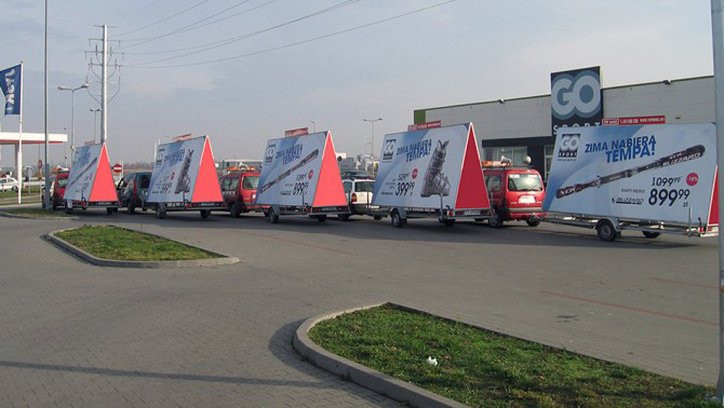 Vůz se společně s billboardovým přívěsem pohybuje po exponovaných místech a dopravně frekventovaných ulicích. Billboard přívěs je osvětlený a opatřený ozvučením pro přehrávání promo spotu. Pohyb vozidla a billboard přívěsu je online sledován GPS modulem.