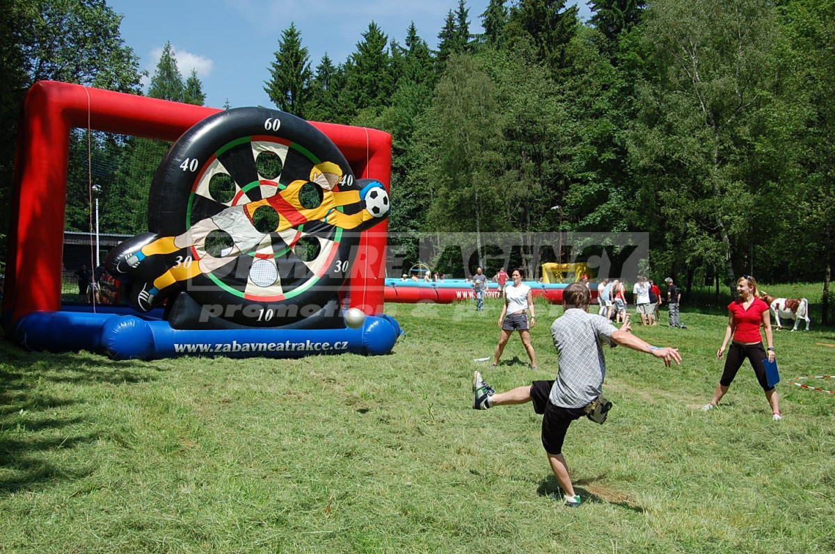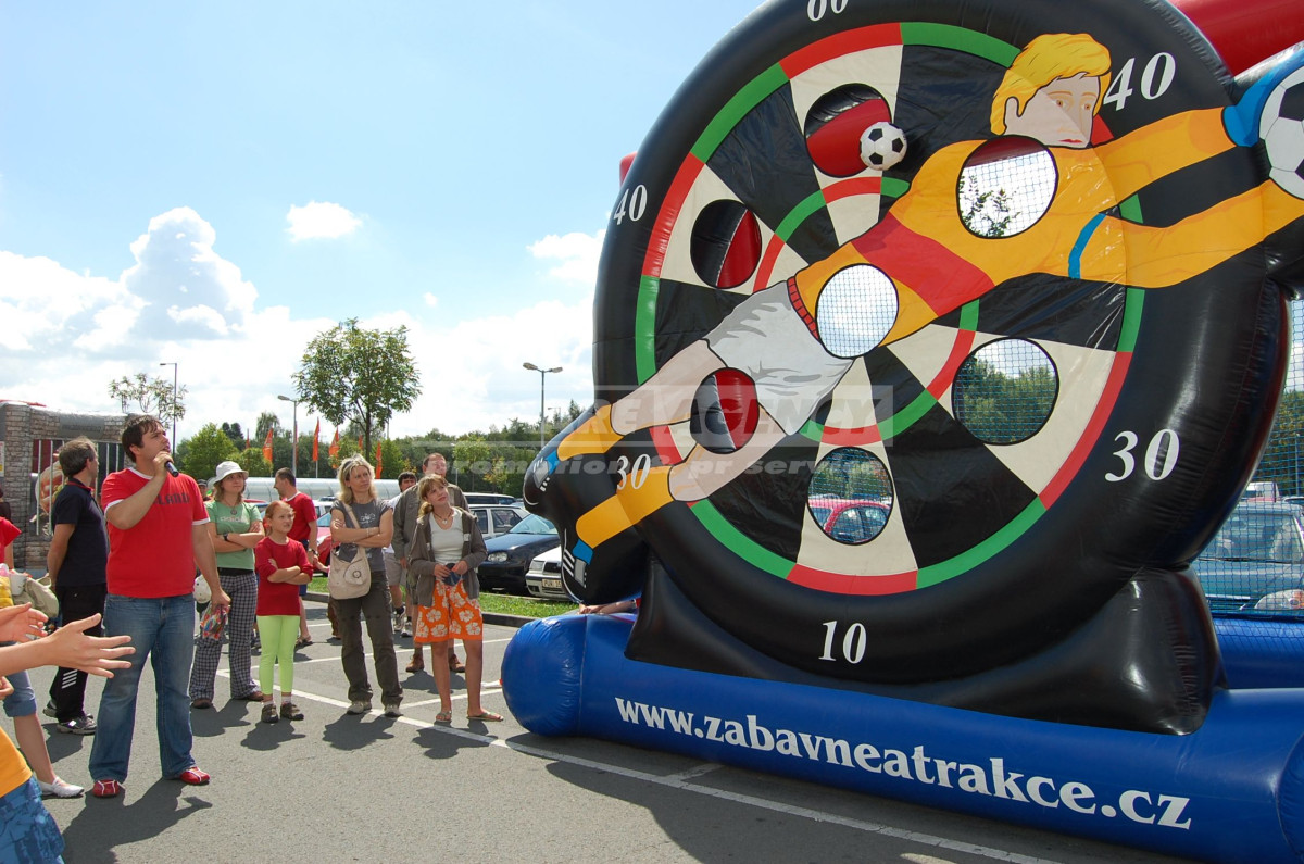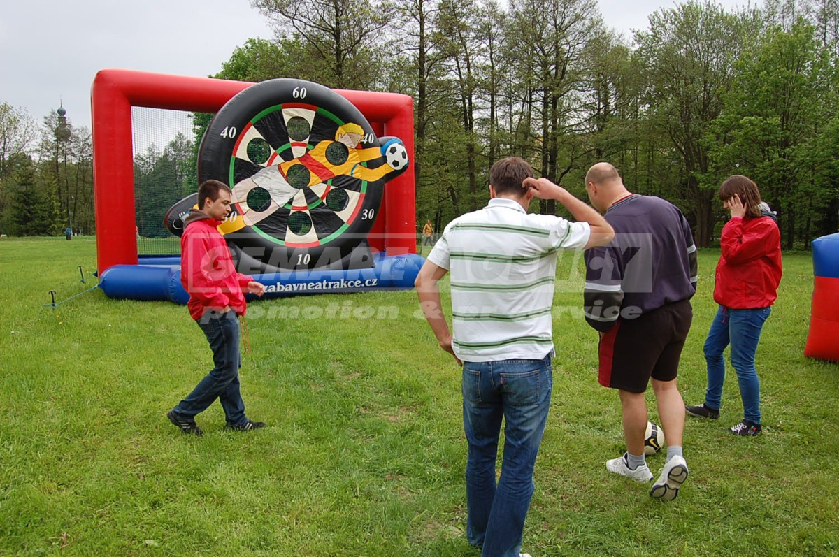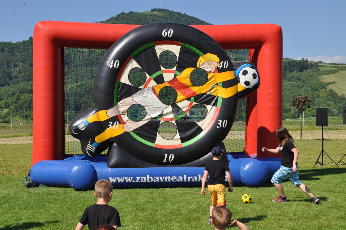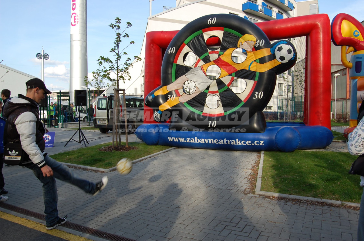 Nafukovací atrakce Brankář je jednou z fotbalových atrakcí k pronájmu. Soutěžící se musí trefit do jednoho ze sedmi otvorů nafukovací atrakce Brankář a získat vytoužené body. Fotbalovou atrakci Brankář doporučujeme k pronájmu pro firemní akce, sportovní den, dětský den, family day nebo roadshow.