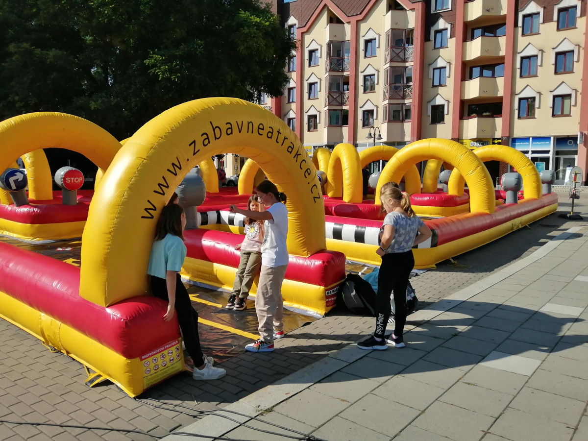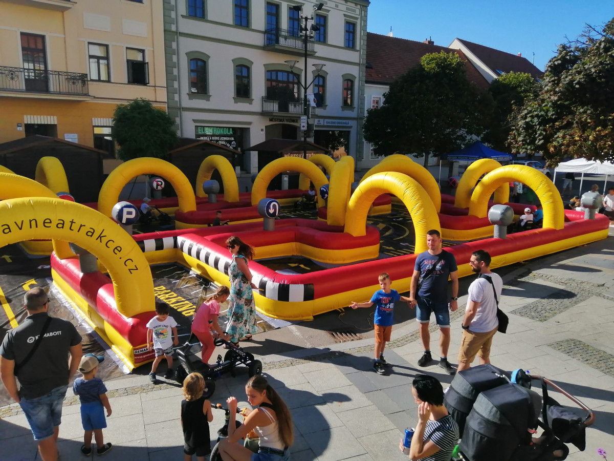 Cena obsahuje: pronájem atrakce dopravní hřiště, montáž, demontáž, obsluhu po celou dobu akce, pojištění ve výši 20 000 000 Kč proti případným úrazům a škodám