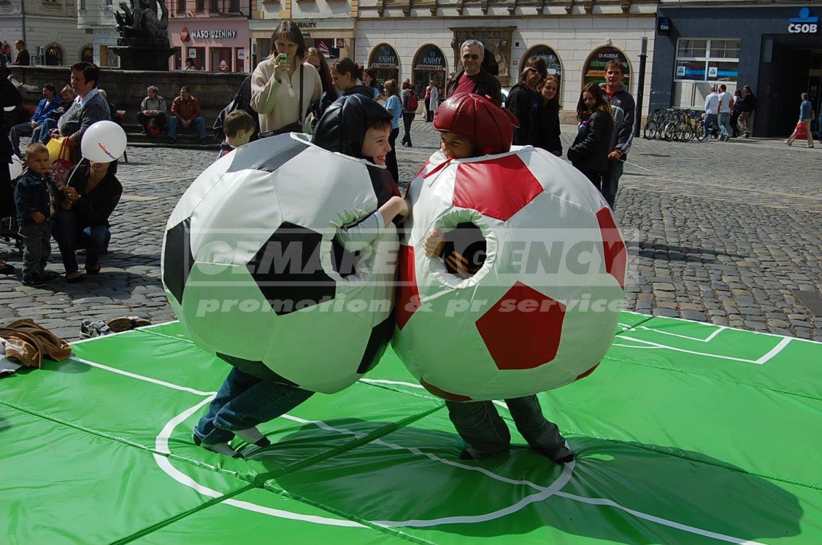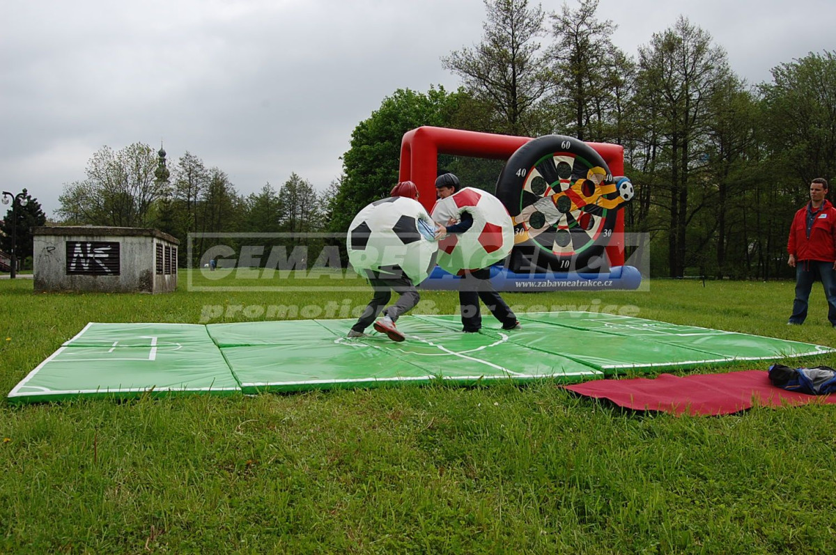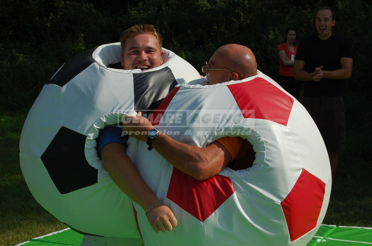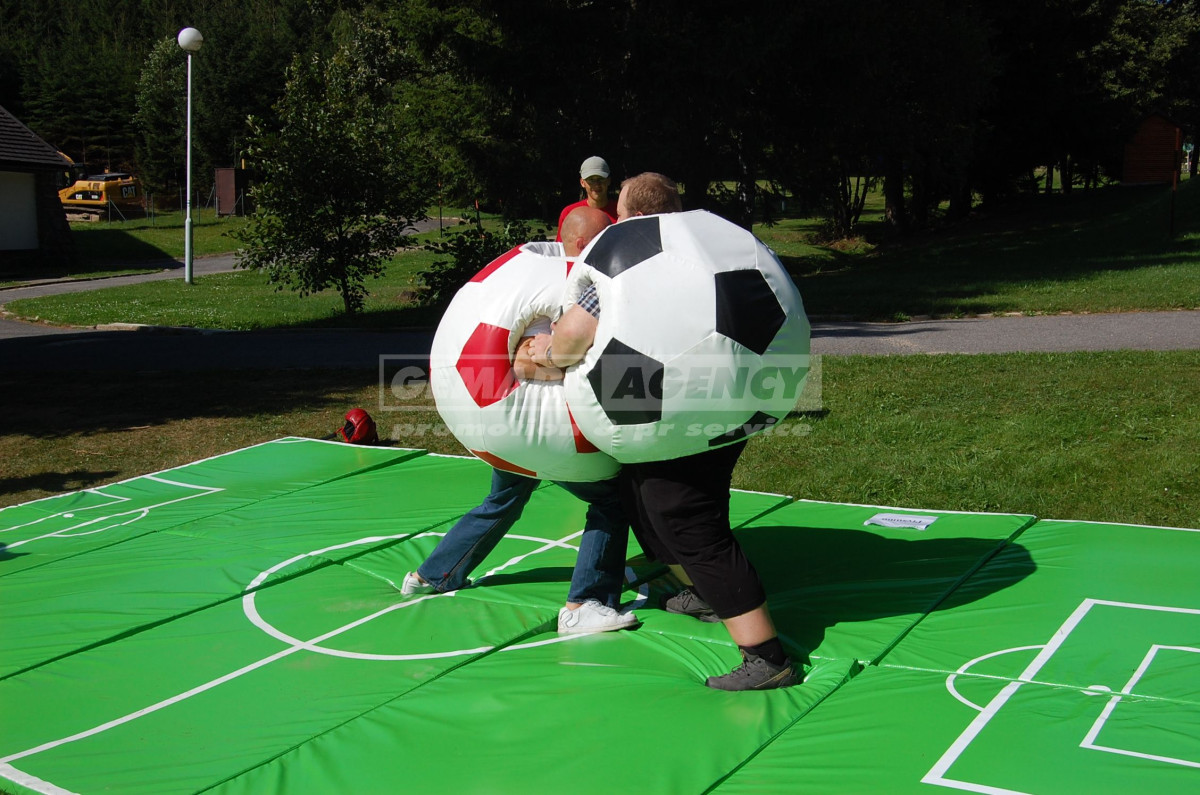 Vtipná a velmi oblíbená atrakce fotbalové sumo zaujme na první pohled. Na fotbalovém sumu, dva stateční zápasníci spolu soupeří v oblecích ve tvaru velkého fotbalového míče. Pravidla fotbalového suma jsou jasná – vytlačit soupeře pomocí svého kulatého fotbalového břicha. Atrakce fotbalové sumo je vhodná pro děti i dospělé.