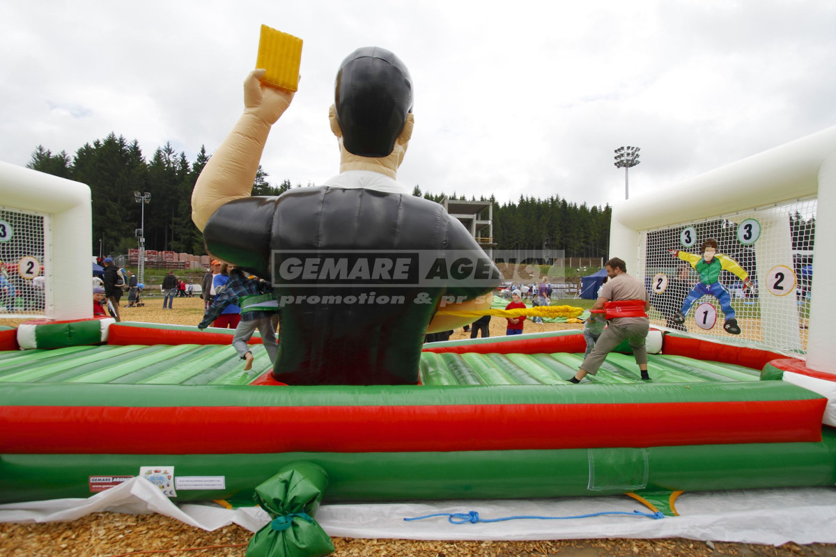 Silově založená fotbalová atrakce. Dva fotbalisti se utkají proti sobě a snaží se jeden druhého přetáhnout na svou stranu a dát mu tak pomyslný gól. Atrakce je vhodná k pronájmu pro děti i dospělé.