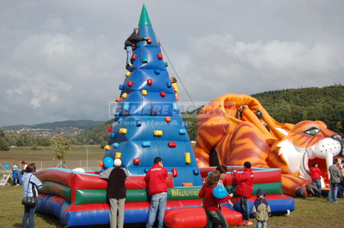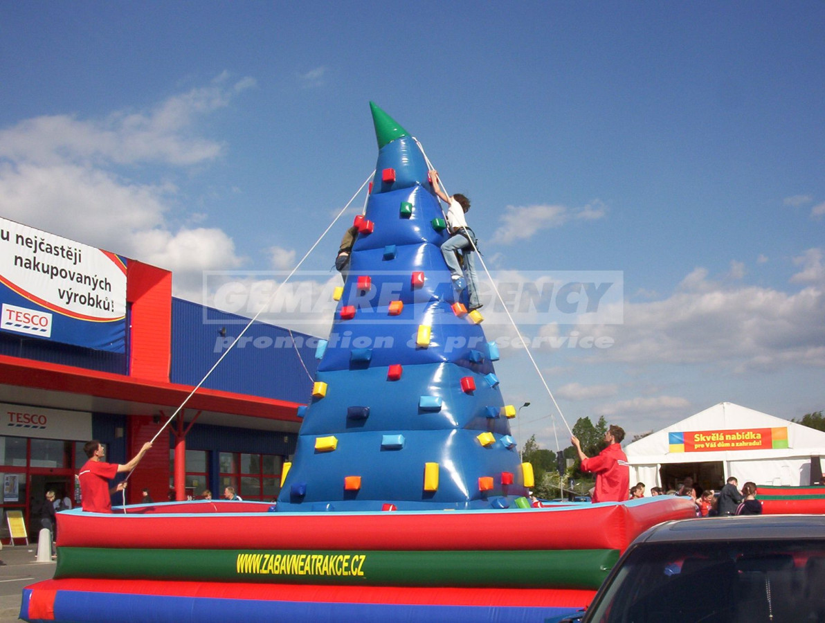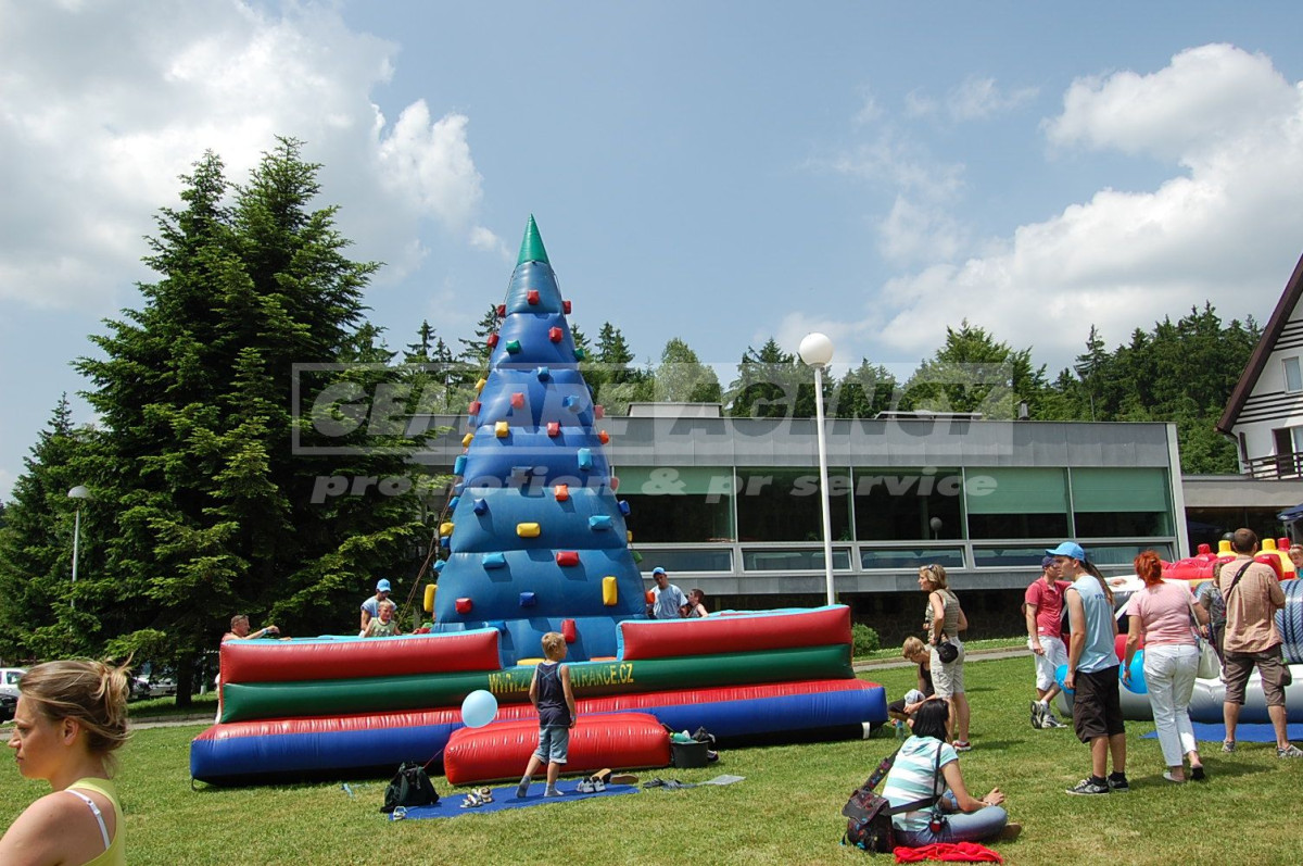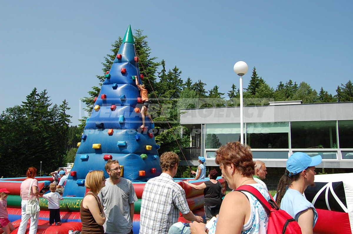 Nafukovací horolezecká stěna je ve tvaru jehlanu a soutěžící si mohou zvolit jednu ze 4 cest nahoru. Horolezecká stěna je vhodná pro děti, ne pro dospělé. Pro dospělé je určena mobilní horolezecká stěna. Děti jsou na horolezecké stěně jištěni odborným personálem.