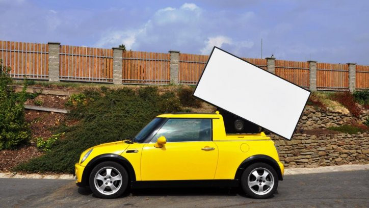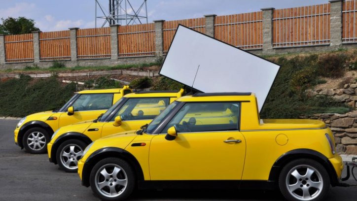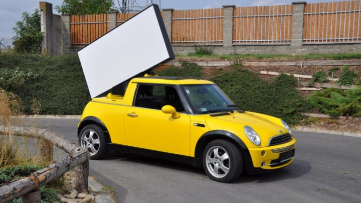 Součástí pronájmu Mini Cooper Billboard je také ozvučení a GPS lokalizace.