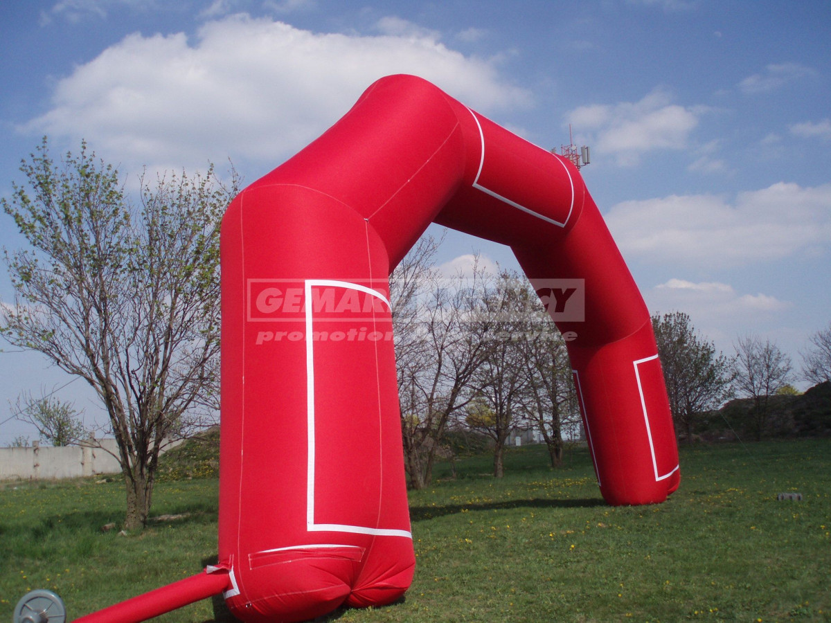 Nafukovací oblouk plní roli poutače či vstupní brány na Vaší sportovní, reklamní nebo firemní akci. Deset metrů široký a pět metrů vysoký nafukovací oblouk je samozřejmě možné opatřit logy či nápisy dle Vašeho přání – uchycení na samotný oblouk je velmi jednoduché pomocí suchého zipu. Zajistěte si vlastní bránu ve firemních barvách a pronajměte si nafukovací oblouk!