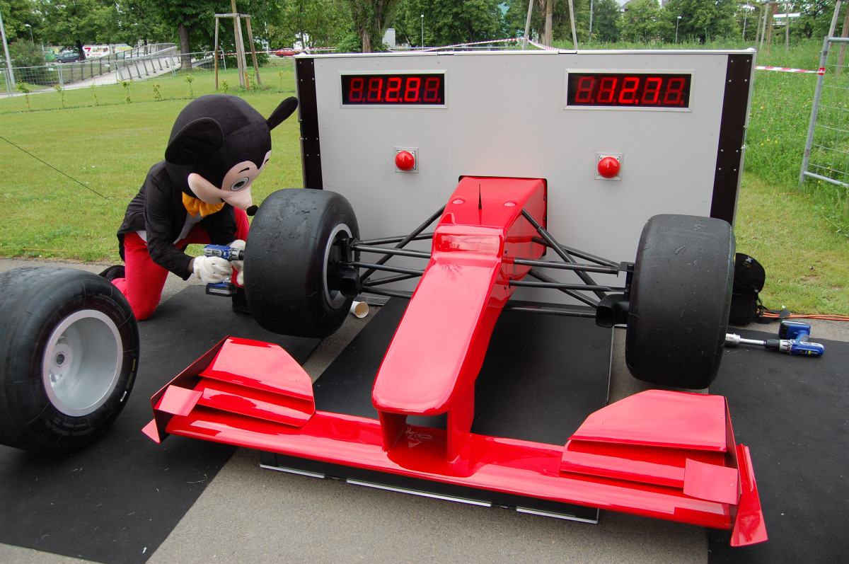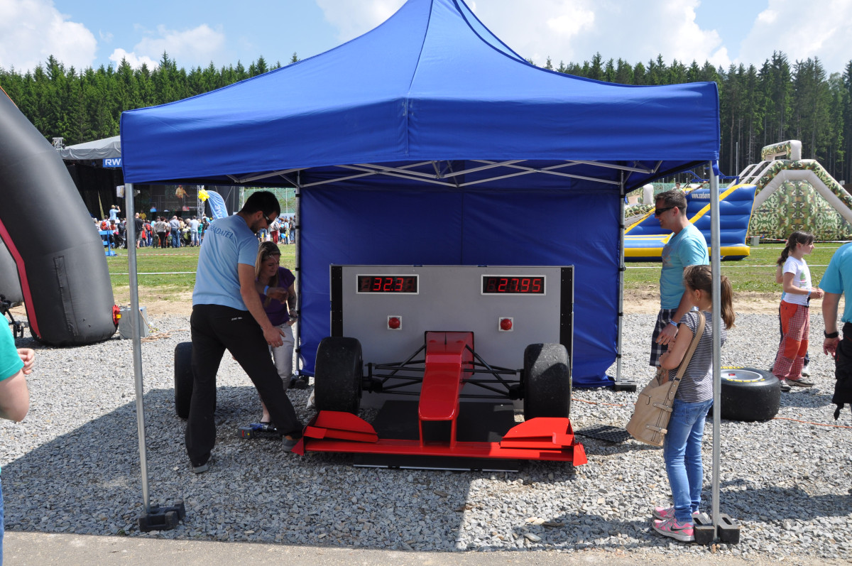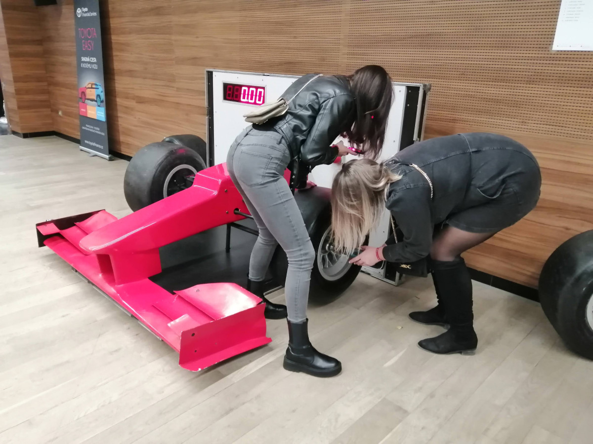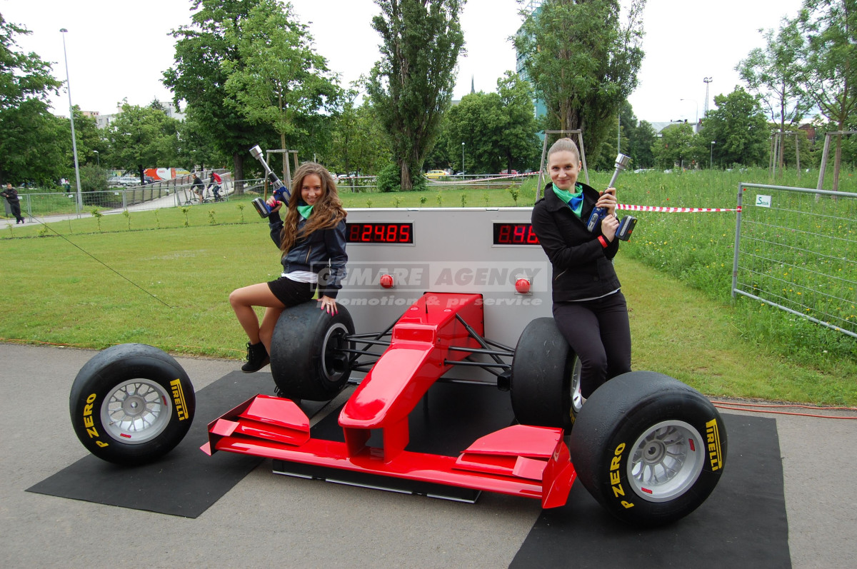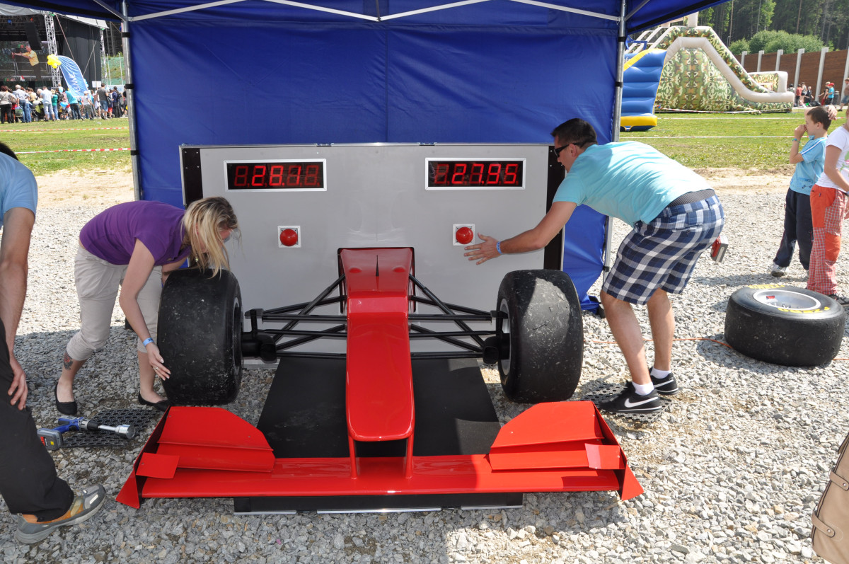 Svět formule 1 už není jen o rychlých vozech a skvělých řidičských schopnostech jezdců, o vítězství rozhoduje také šikovnost mechaniků při výměně pneumatik. Vyzkoušejte si svůj vlastní pit stop a změřte si, jak dlouho by vám trvala výměna pneumatiky. Pit stop simulátor si mohou soutěžící vyzkoušet samostatně nebo v rámci souboje s protivníkem. Vždy je měřen čas, který je zobrazen na digitální časomíře pit stop simulátoru. Tato zábava je vhodná jak pro děti, tak pro dospělé.