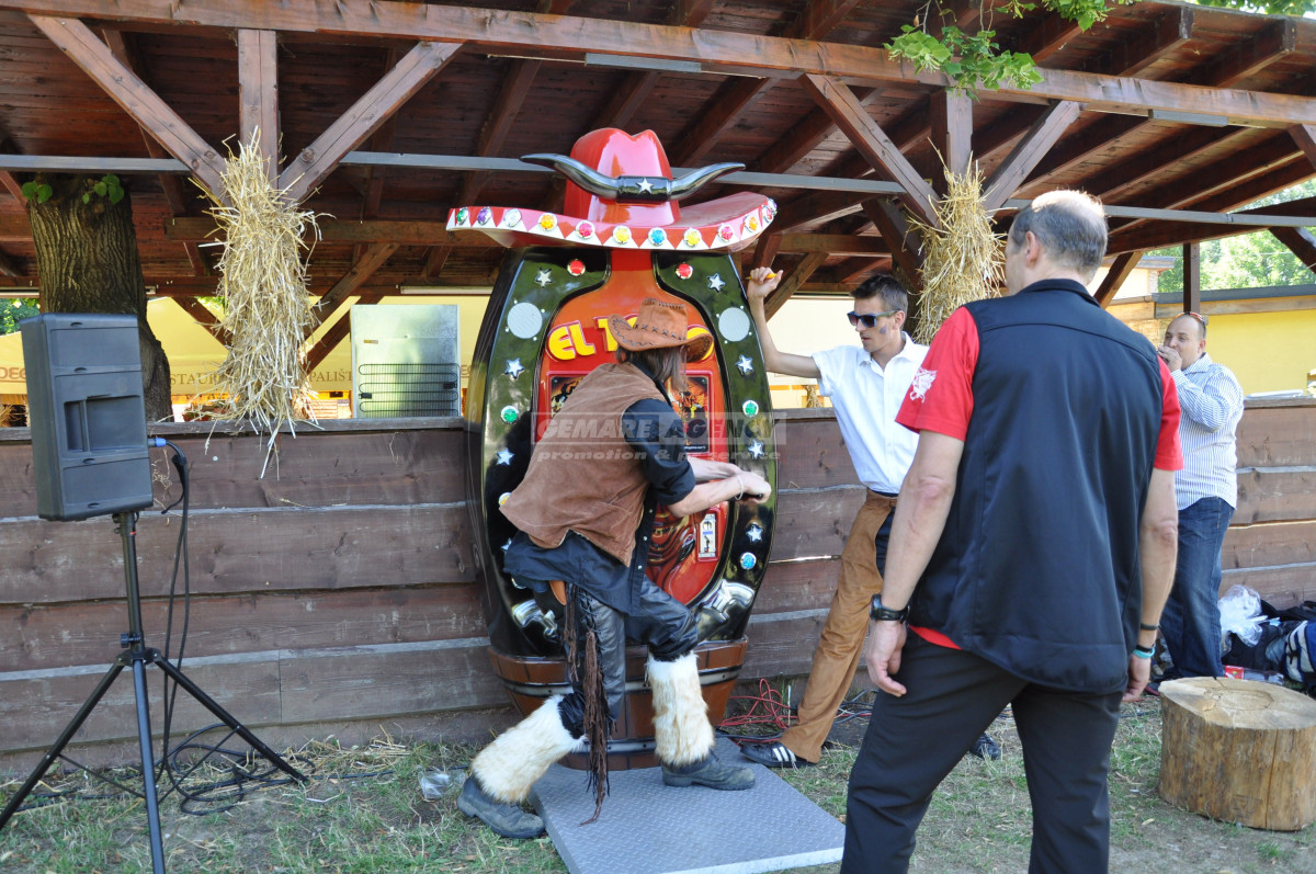 Cena obsahuje: pronájem atrakce simulátoru krocení býka, montáž, demontáž, obsluhu po celou dobu akce, pojištění ve výši 20 000 000 Kč proti případným úrazům a škodám