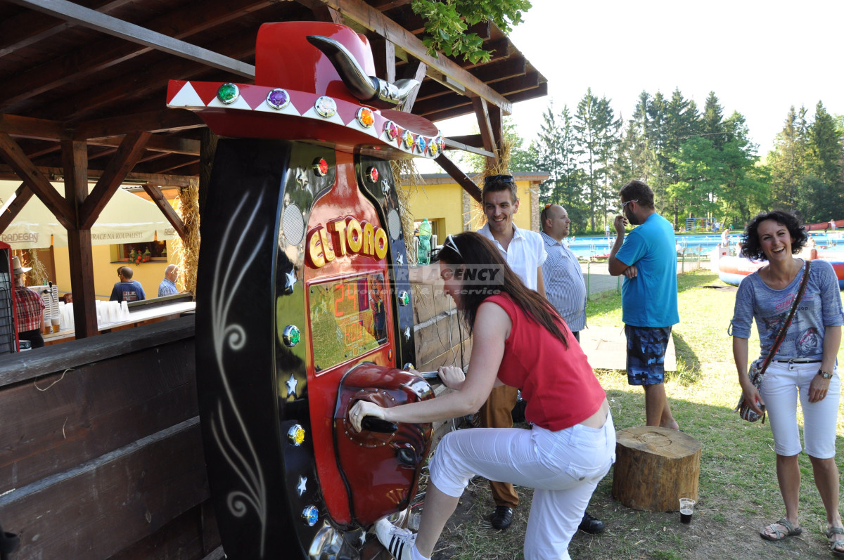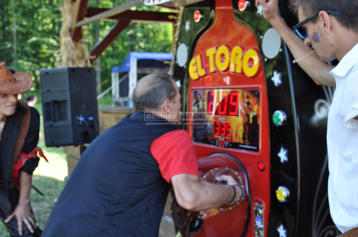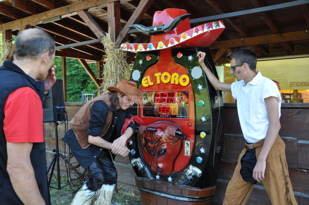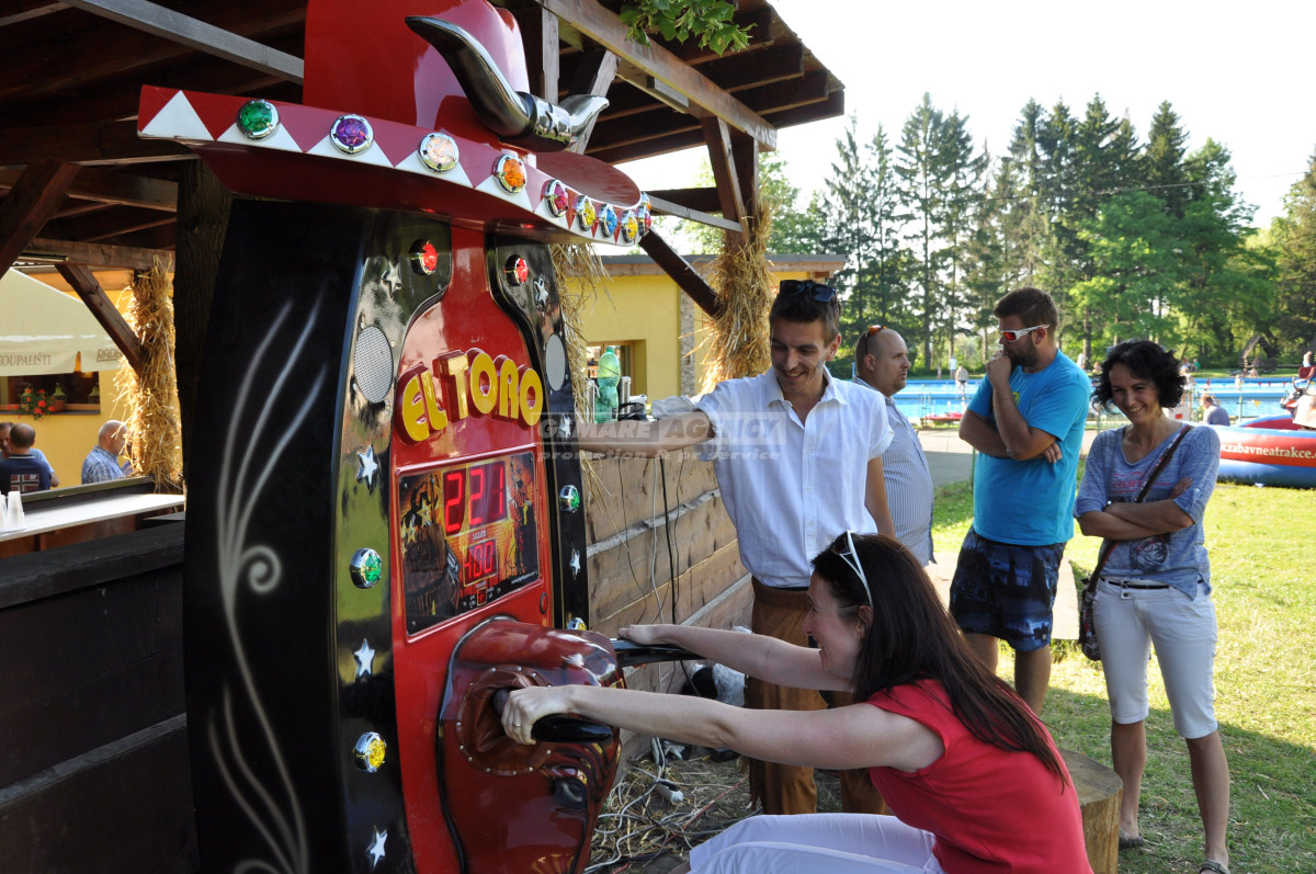 Na atrakci simulátor krocení býka se budete cítit jako skutečný toreador. Soutěžící musí chytit býka za rohy a překonat jeho vzdor. Simulátor hodnotí váš výkon body, které jsou zobrazeny na displeji. Atrakce je vhodná k pronájmu pro děti i dospělé.