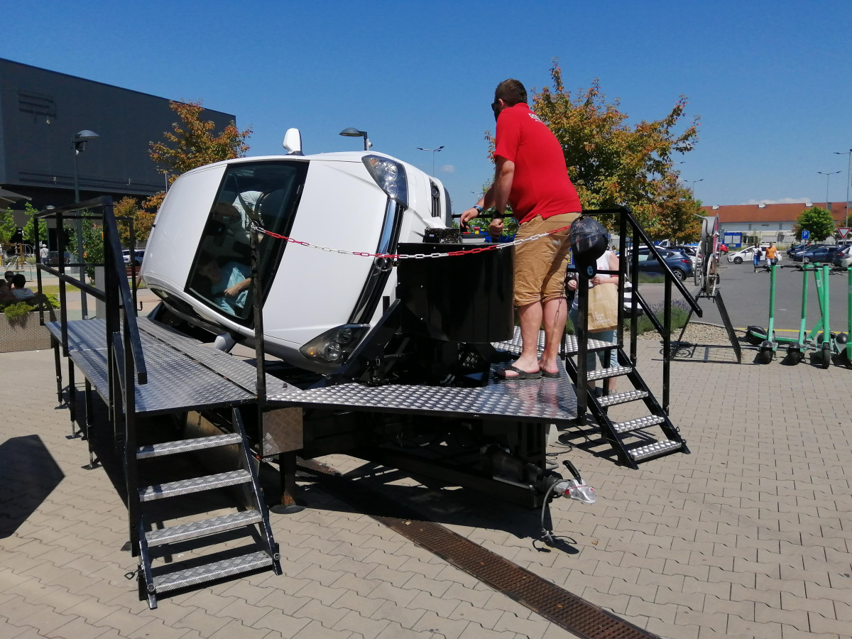 Pro dny bezpečnosti nabízíme k pronájmu profesionální otočný simulátor autonehody. Poučte návštěvníky firemního