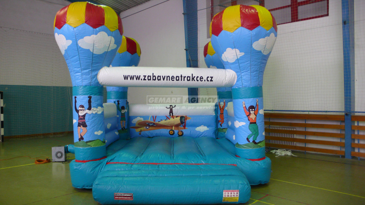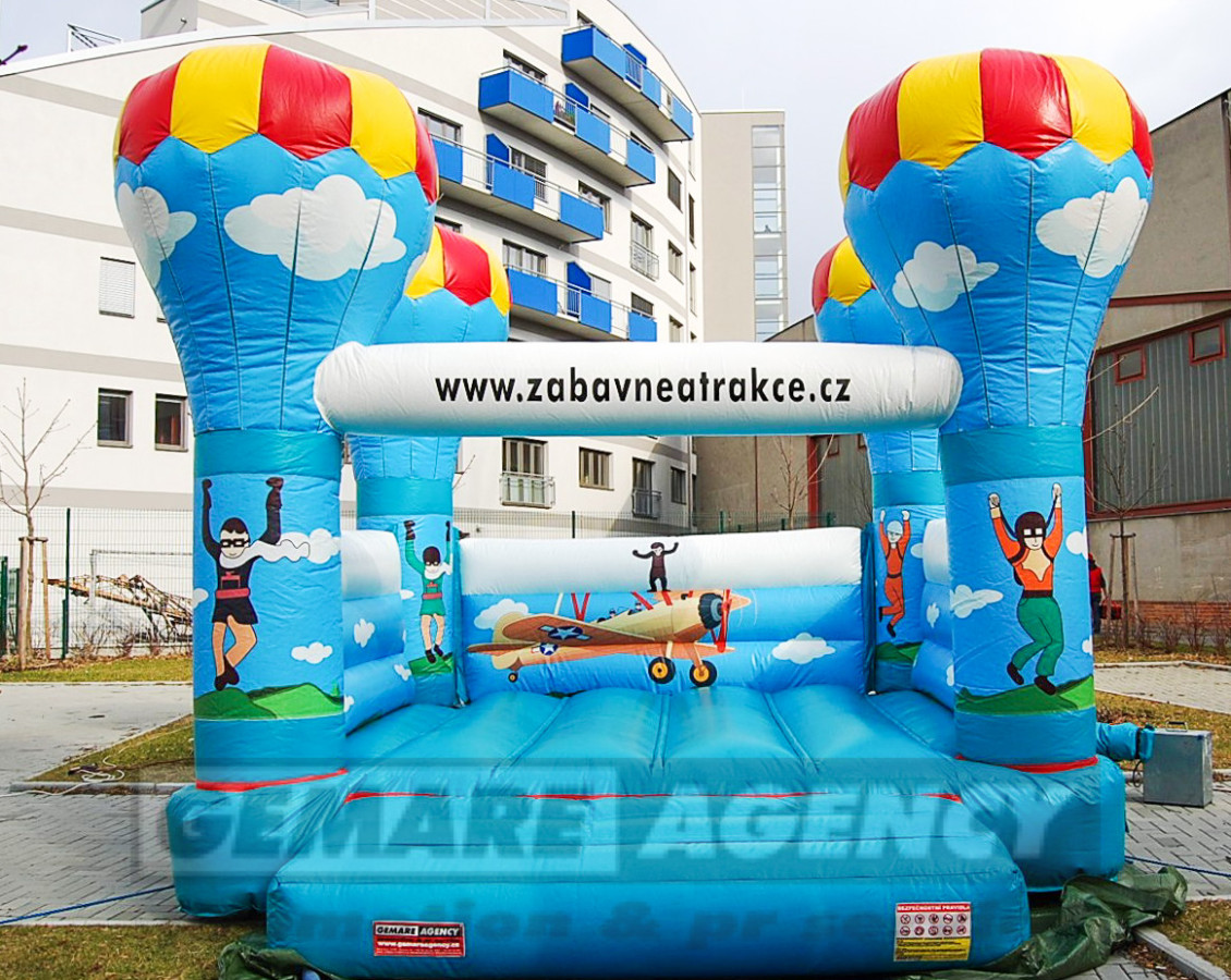 Jako parašutisté se budou cítit děti vyskakující na skákacím hradu „parašutista“. Skákací hrad „parašutista“ je vhodný pro akce s leteckou tématikou nebo armádní akce. Skákací hrad vždy dětí poteší a pobaví. Nabízíme pronájem atrakce v Praze a v celé ČR.