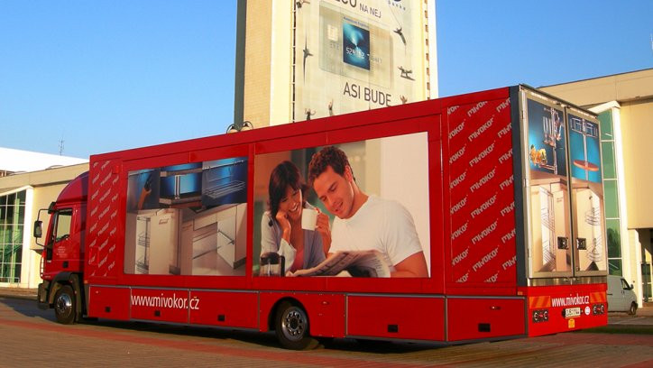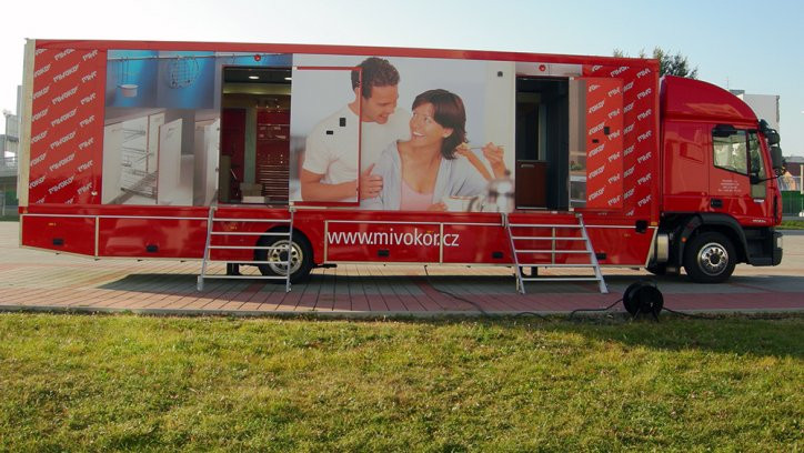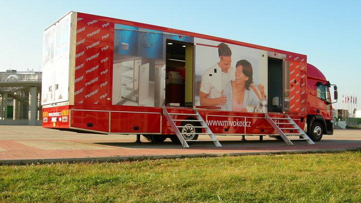 Exhibition truck je menší alternativou Exhibition trucku 1 (tahač + návěs), kdy je prezentační plocha umístěna v nástavbě vozu a to v celkové ploše 30 m2.