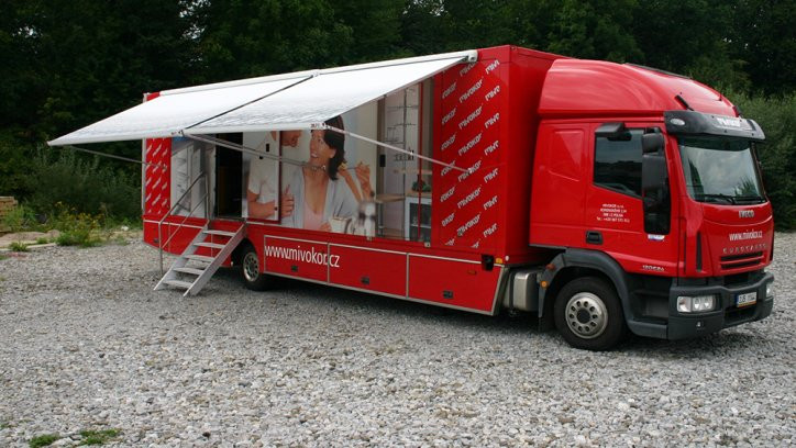 Díky unikátnímu systému výsuvného boxu z nástavby vozu je rozložení trucku do prezentační pozice otázkou pouze několika desítek minut.