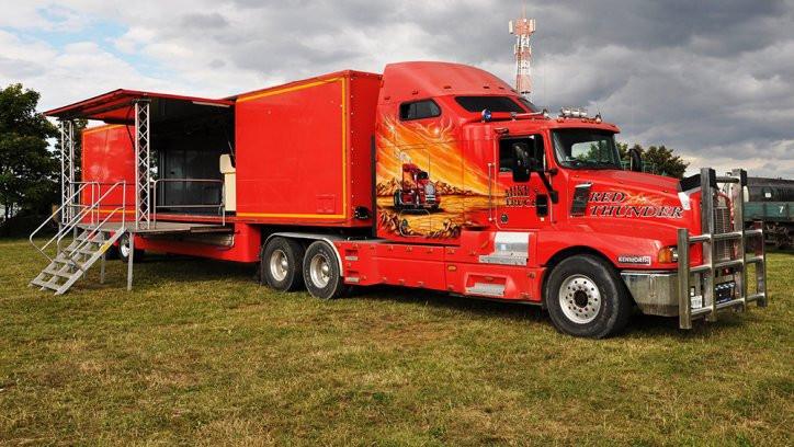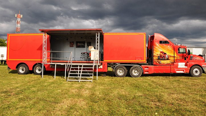 Samotná plocha návěsu promo trucku je rozšířena o výsuvné podium o rozměru 4,8 x 2,2 m včetně zastřešení a truss konstrukce, na kterou lze umístit osvětlení a ozvučení.