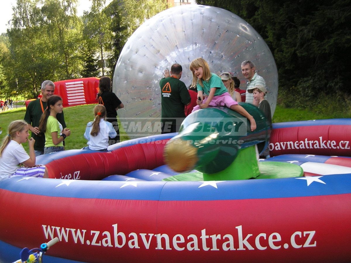 Cena obsahuje: pronájem atrakce rodeo láhev, montáž, demontáž, obsluhu po celou dobu akce, pojištění ve výši 20 000 000 Kč proti případným úrazům a škodám