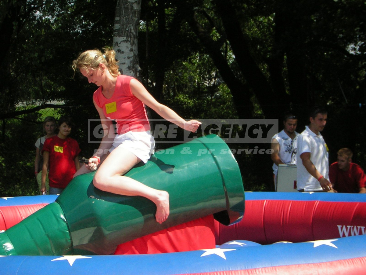 Rodeo bottle, rodeo láhev patří do stejné kategorie jako elektrický býk nebo surf simulátor. Úkolem jezdce je udržet se na rodeo láhvi co nejdéle. Rodeo bottle, rodeo láhev je vhodná k pronájmu pro roadshow, promo akce, veletrhy, reklamní akce a party propagující alko i nealko nápoje.