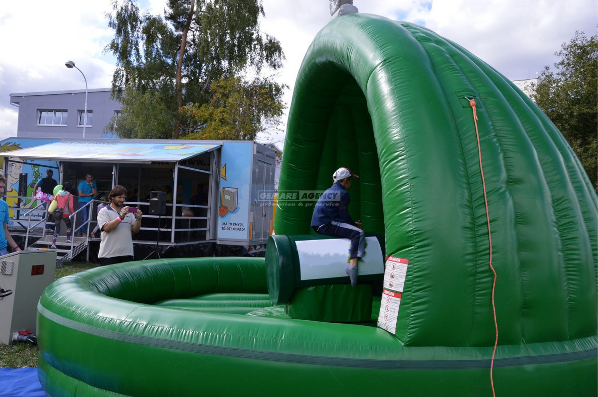 rodeo lahev v nafukovacím kontejneru. Vyzkoušejte si jízdu na neposedné lahvi uvnitř nafukovacího zeleného