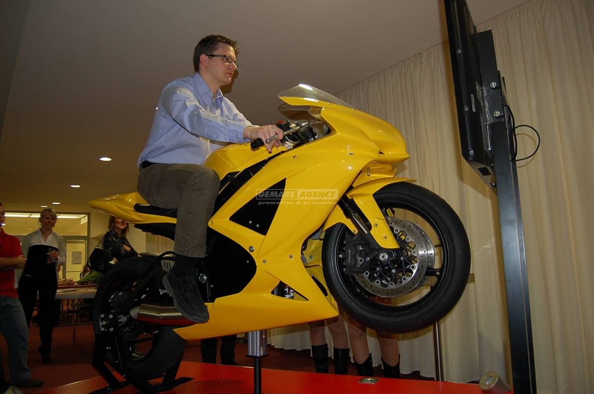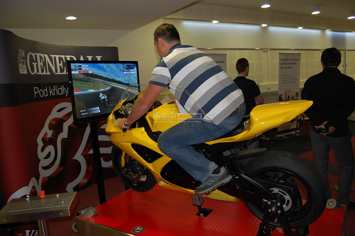 Exkluzivní simulátor motorky ve 3D, který nabízíme jako jediní v ČR/SR! Chcete odlišit vaši akci a dodat jí punc jedinečnosti? Simulátor motorky ve 3D je vhodný pro firemní akce, exkluzivní party a večírky, prezentace, veletrhy a výstavy, případně dětské dny. V případě zájmu je možné doplnit simulátor motorky o některý ze simulátorů formule 1.