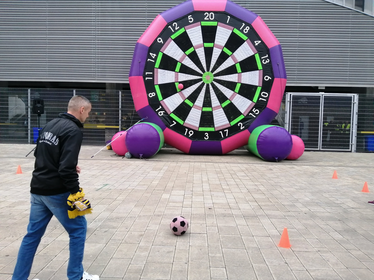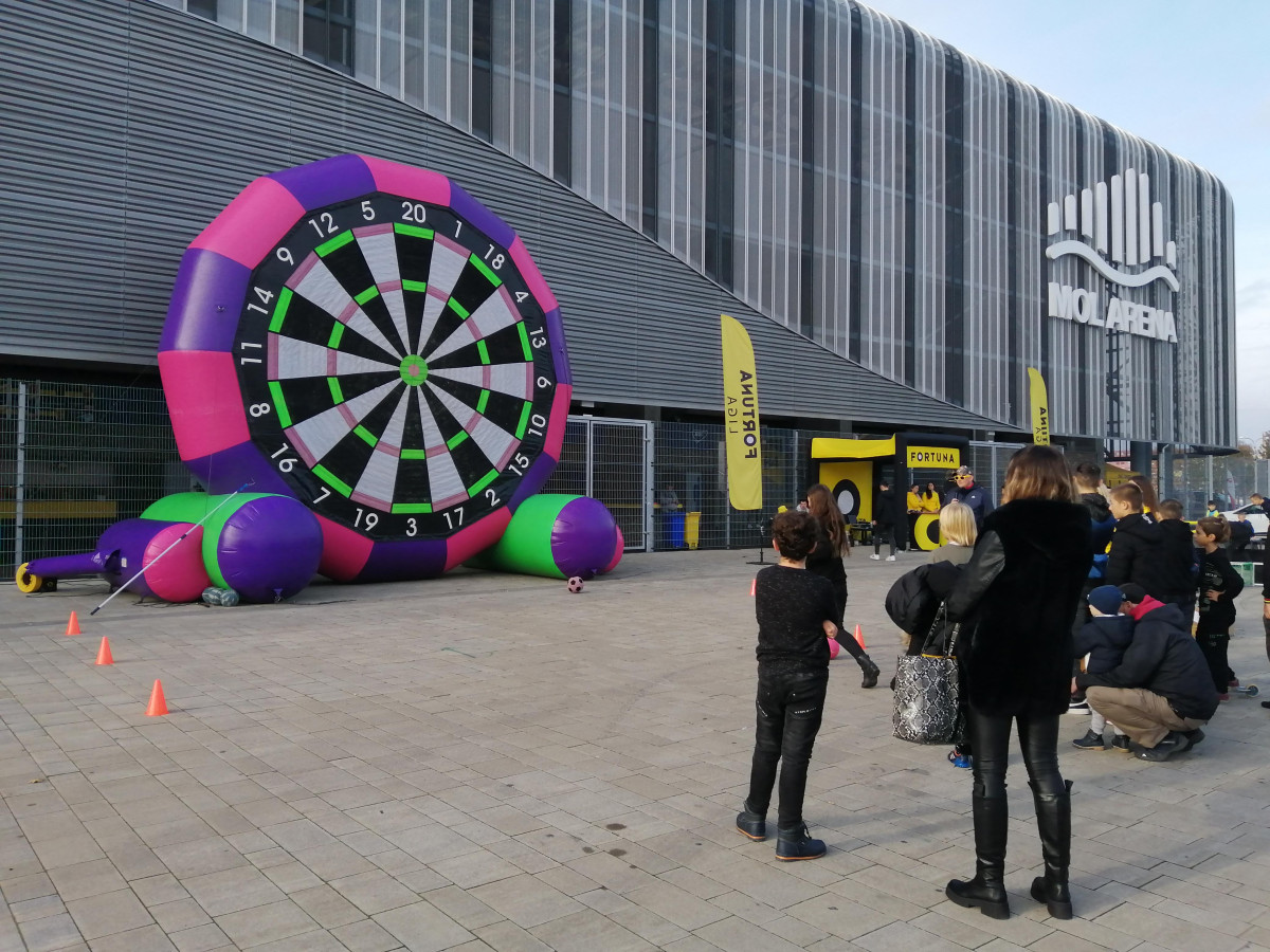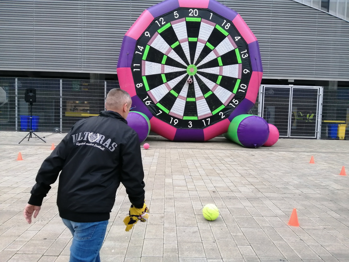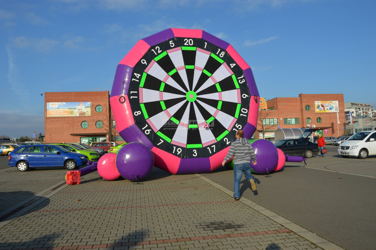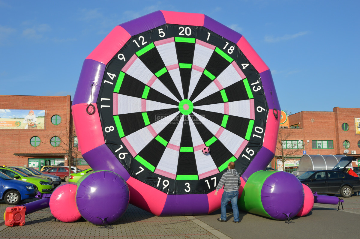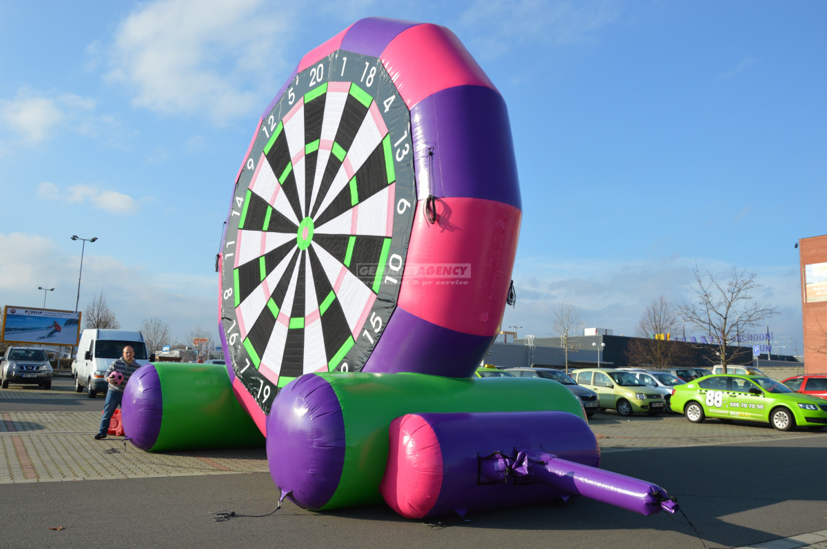 Spojením šipek a fotbalu jsme dali vzniknout nové atrakci – fotbalovým obřím šipkám. Tento velký