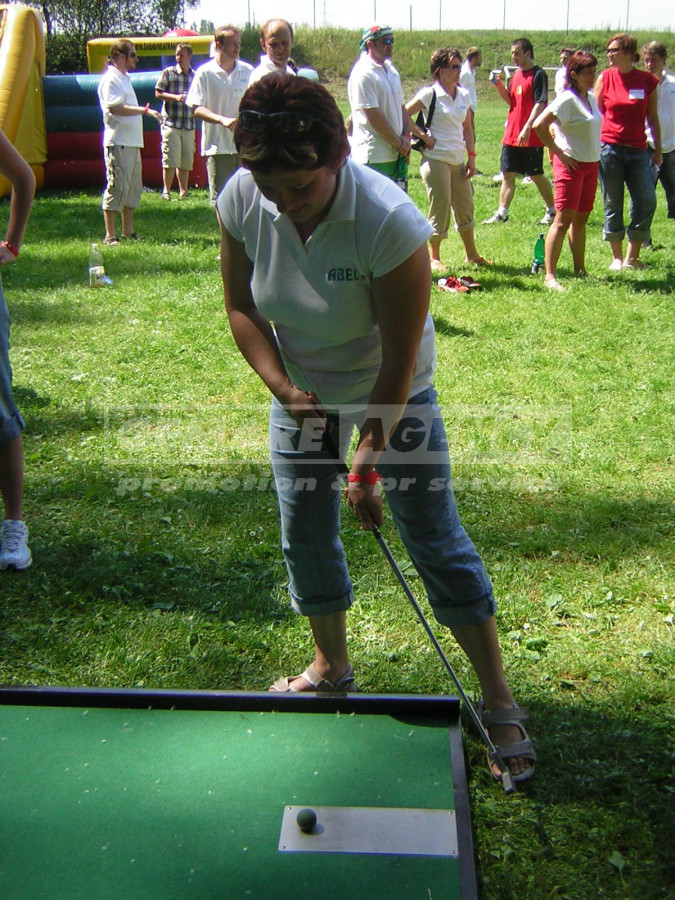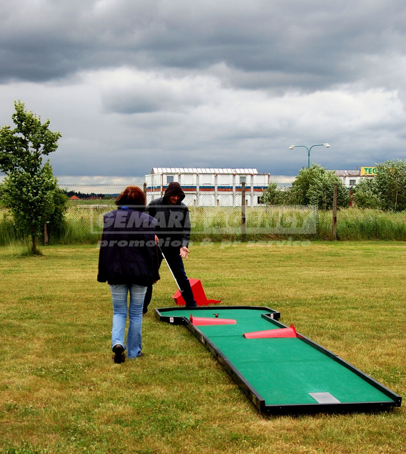 Chtěli byste si zahrát minigolf v interiéru? Zajistíme pro Vás pronájem minigolfových drah, které snadno umístíte ven i do jakékoliv budovy. Díky variabilitě minigolfu můžete jednoduše a rychle vyměnit jednu překážku za druhou a udělat svůj turnaj ještě napínavější. Pronajměte si náš minigolf a uspořádejte mezi svými zaměstnanci či hosty minigolfový turnaj.
