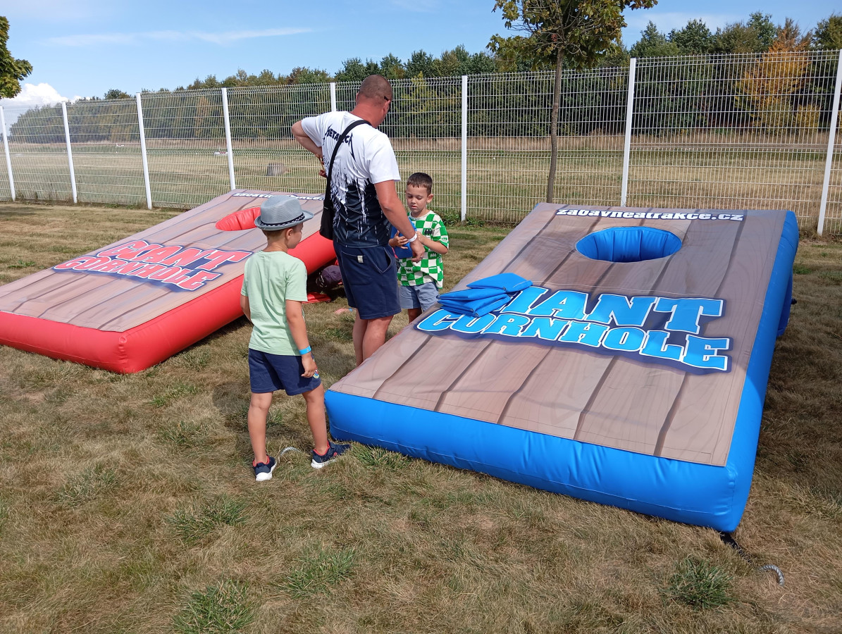 Co je nutné zajistit k pronájmu atrakce obří Cornhole: