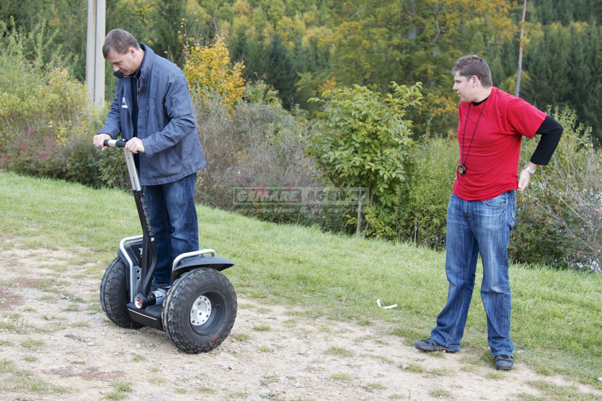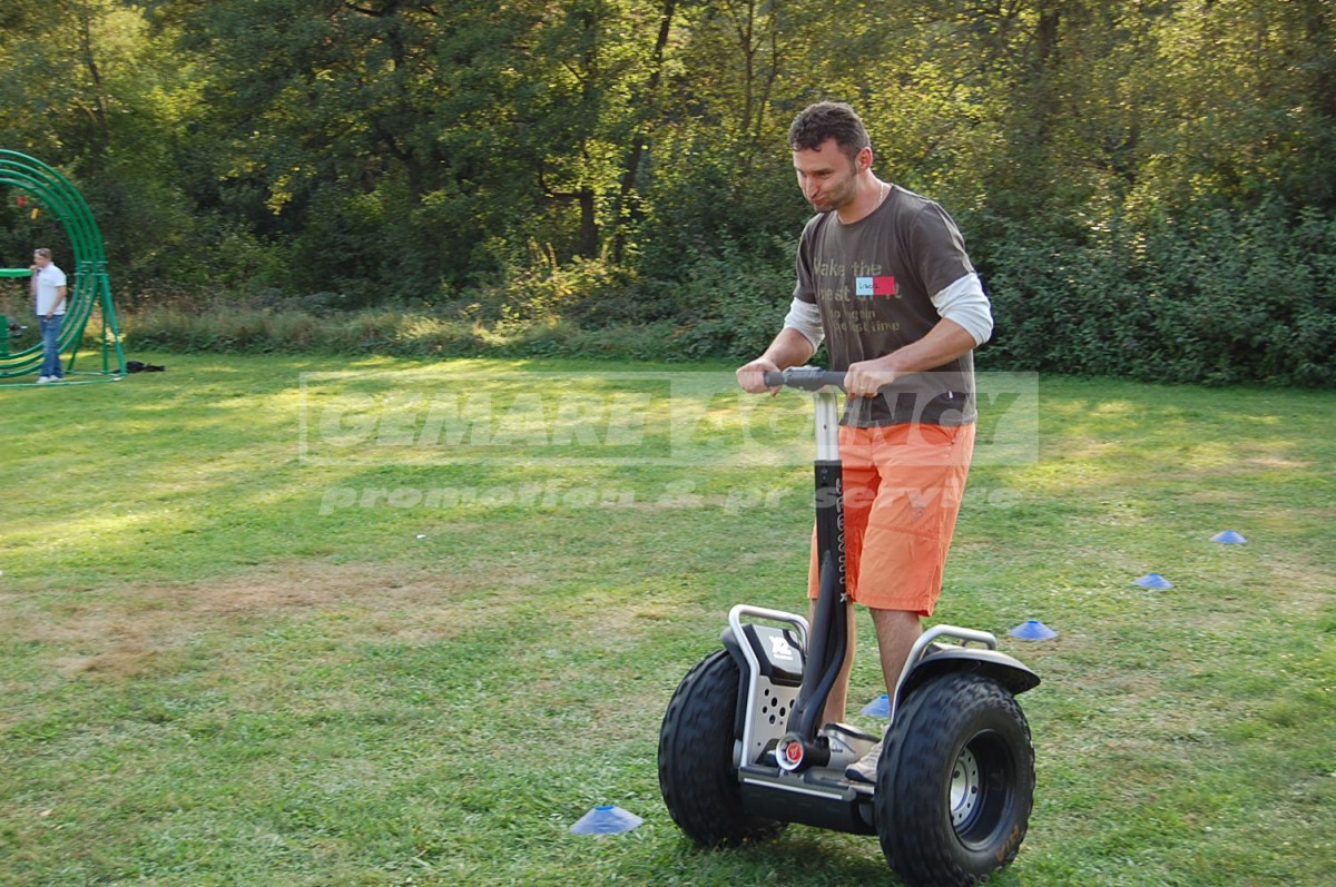 Jízda na vozítku Segway využívá princip držení rovnováhy a je pohodlně možná jak na rovných plochách, tak i v terénu. Dvoukolové osobní vozítko Segway se totiž řídí pouhým náklonem postavy řidiče. Chcete ozvláštnit firemní akci nebo teambuilding? Pronajměte si vozítka Segway!