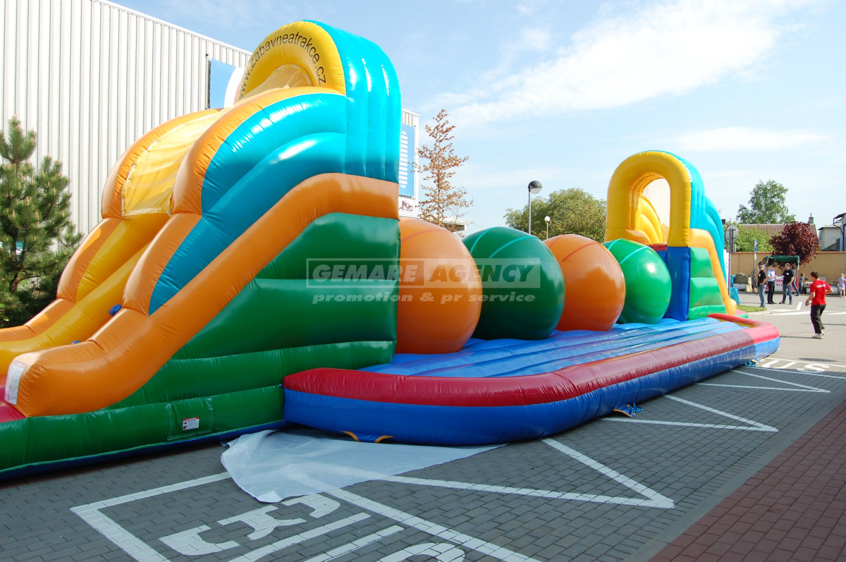 Pronájem legendární Wipe out obří koule (balony) - překážková dráha z populární soutěže „Wipe Out - Drtivá porážka“. Na soutěžící jsme ovšem hodnější a místo pádu do studené vody, nabízíme měkký dopad do nafukovací matrace adrenalinové atrakce Wipe out obří koule. Úkolem soutěžících je přeběhnout nebo přeskákat dráhu složenou z velkých míčů.