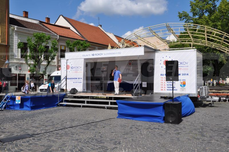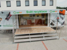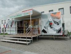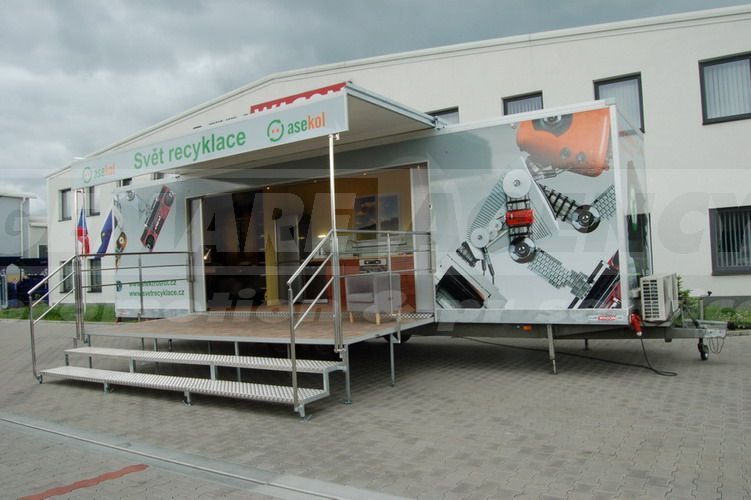 Prezentační přívěs je možné využít jako výstavní stánek s expozici produktů čí zázemím pro jednání. Pronájem promo přívěsu je zároveň možný jako mobilní podium včetně zázemí pro firemní akce, roadshow, festivaly a volební kampaně.