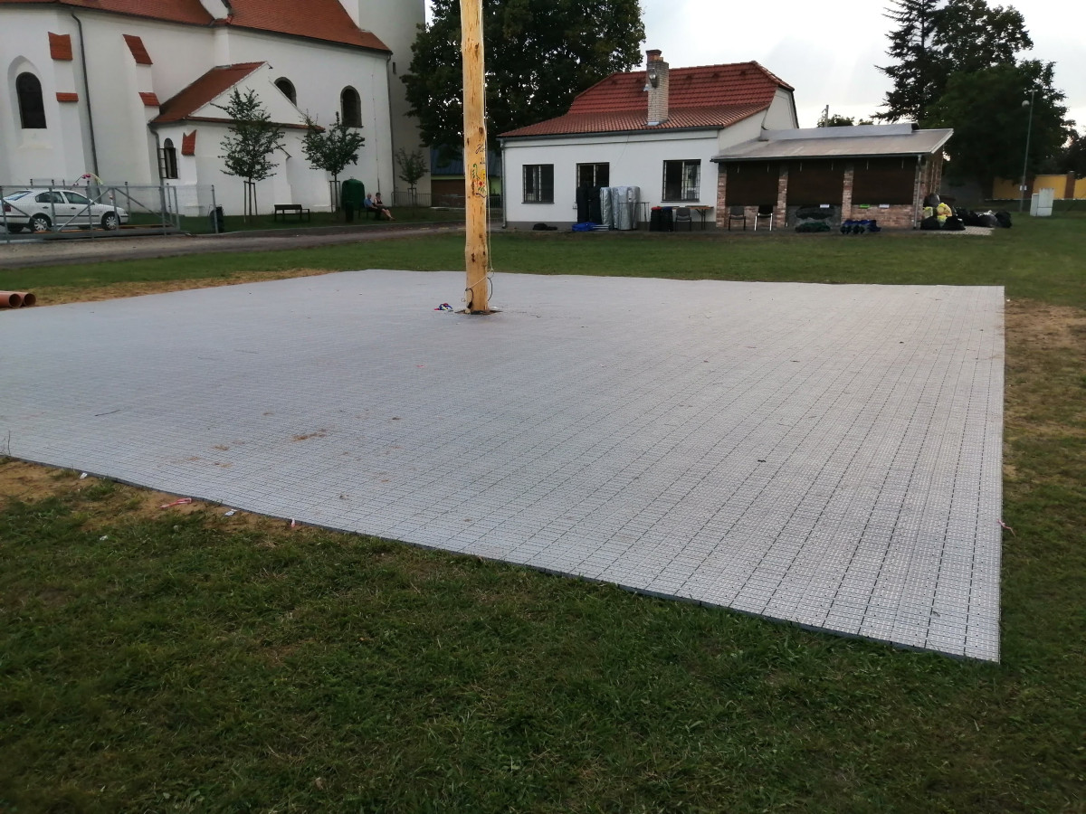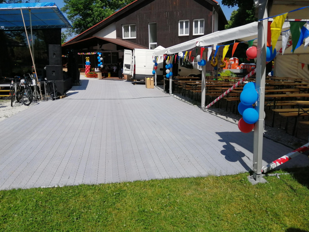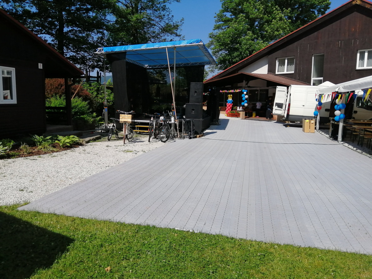 Mobilní taneční parket . Základní cena za 1 denní pronájem 100 Kč + DPH 21% - 1m² Cena obsahuje: taneční parket, montáž, demontáž Cena nezahrnuje: dopravu kalkulovanou individuálně, z Olomouce Mini Showtruck Party stan 10 x 15 m Pivní sety Mobilní zábrany, bariéra, oplocení