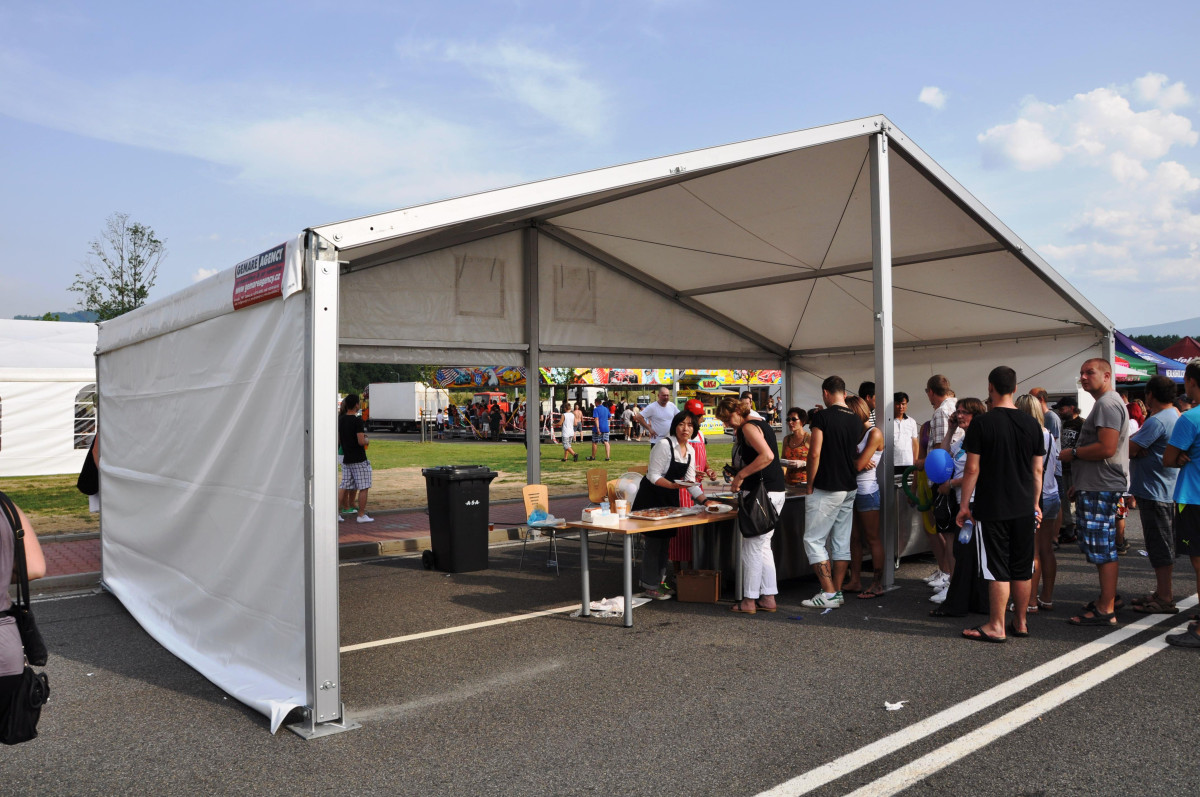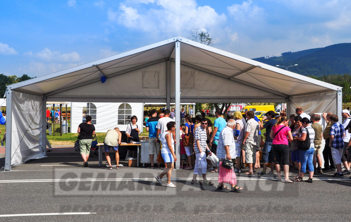 Party stan 10 x 5m je vhodný k pronájmu jako zázemí pro firemní akce, výdej cateringu nebo jako menší výstavní stánek. Kapacita party stanu je cca 20 – 50 osob.
